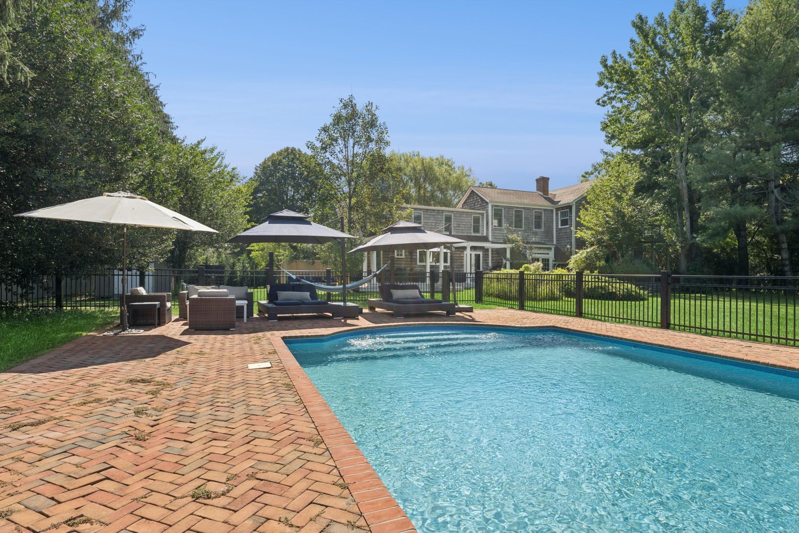 Come see this charming, comfortable, and sun-drenched 6 bedroom, 5 bath summer rental. Close to Bridgehampton Village and the ocean. The balcony from the second floor primary suite boasts farm views, and, the large private backyard features a fenced, heated Gunite pool. The gourmet kitchen will delight any cook and is magnificently appointed. The decking allows you to privately bask in the sun of the serene one +/- acre setting. Rent this im