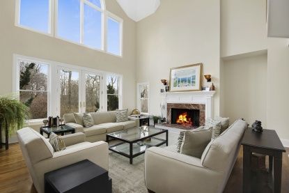 Privacy abounds in this 3-acre Hamptons retreat that's still close to the action, beaches and summer fun of Westhampton Beach. This meticulously-maintained Post Modern, located down a private driveway and built by respected Hamptons builder Sea Level Construction, offers 7 bedrooms, 5 1/2 baths and over 6,500 sq. ft. of living space. The open and airy entry way leads to a 2-story living room with wood-burning fireplace; and a chef's gourmet ki