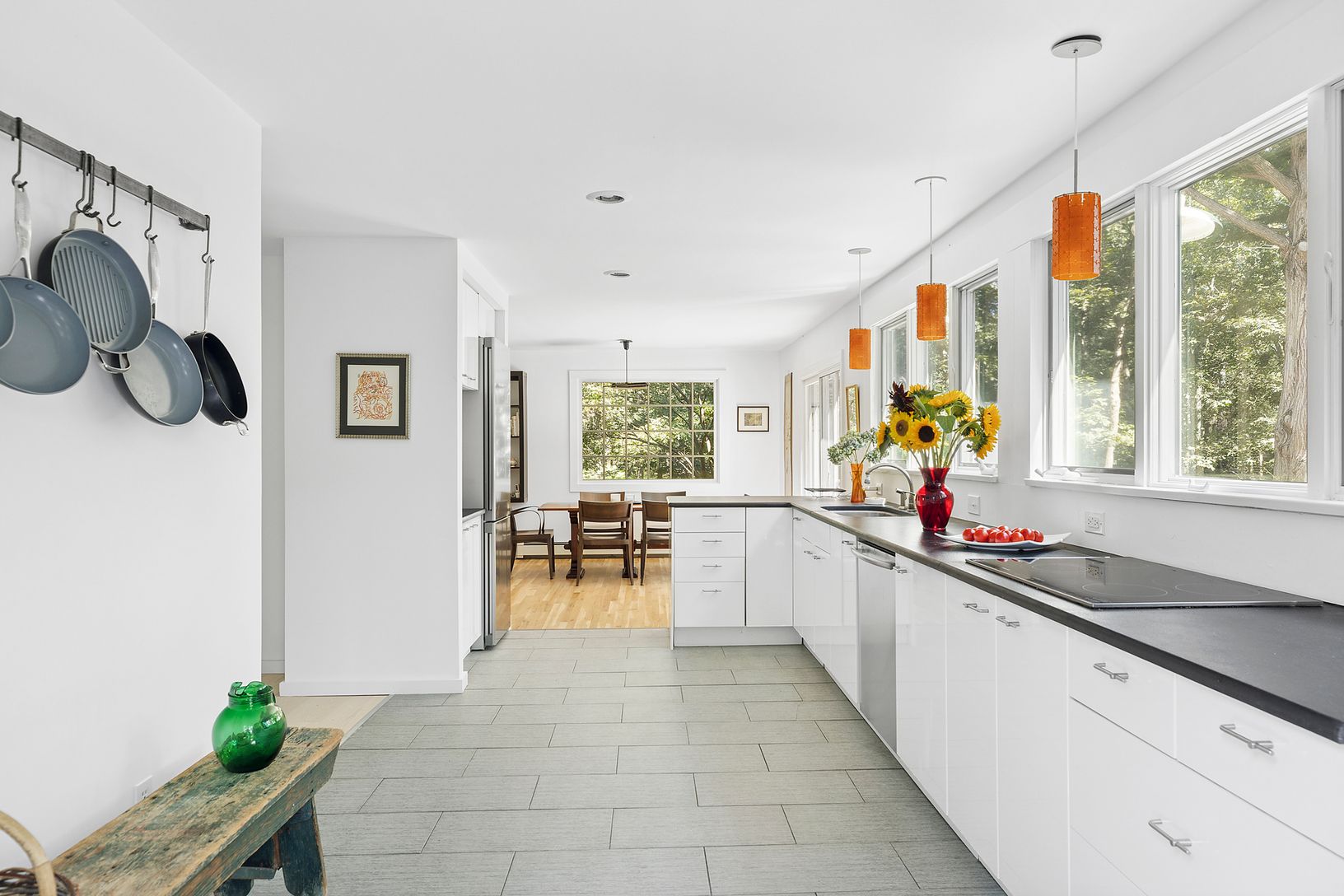 Beautifully situated within 1.25+/- acres, this fantastic property offers complete privacy and is conveniently located near the Villages of Sag Harbor, Bridgehampton and East Hampton, close to Ocean Beaches, Wineries, and Farm Stands. This well cared for home has a chic modern feel, features a stylish living room with movie screen for streaming/entertainment and fireplace; a casual dining area and a stunning Chef's kitchen complimented by Mil