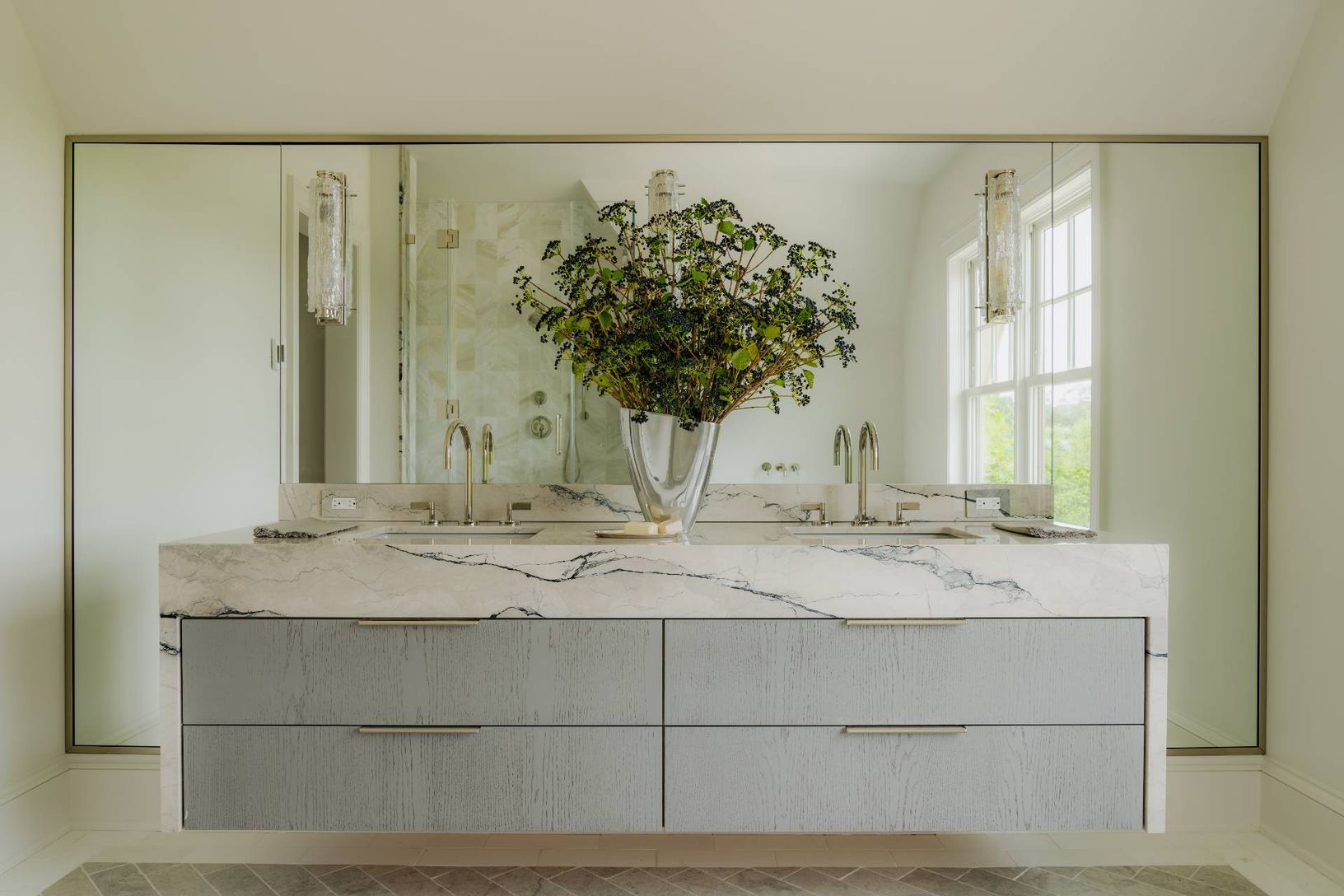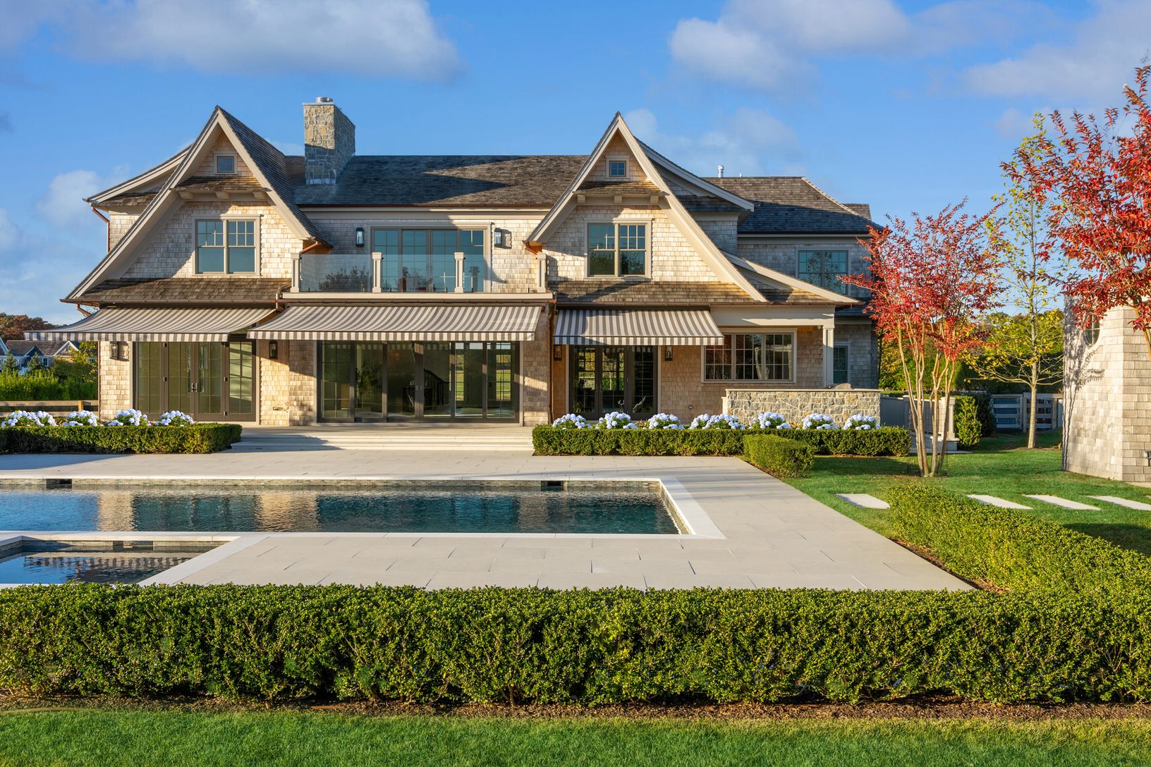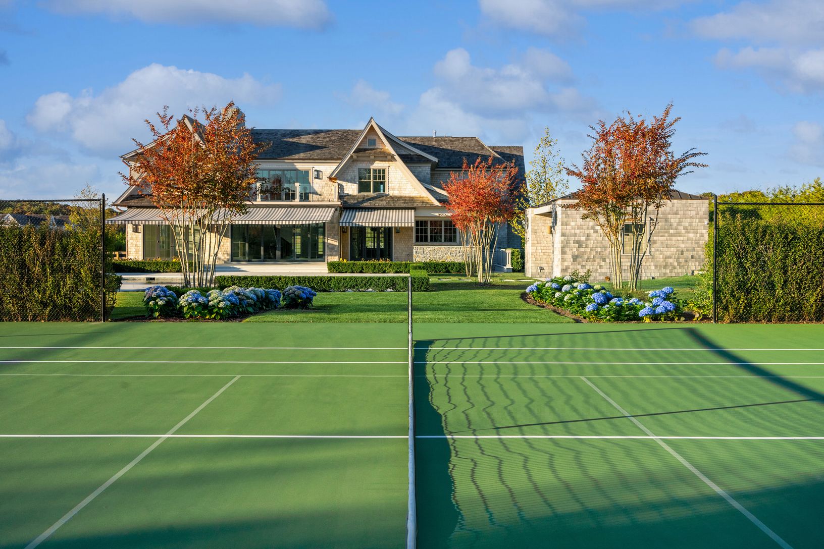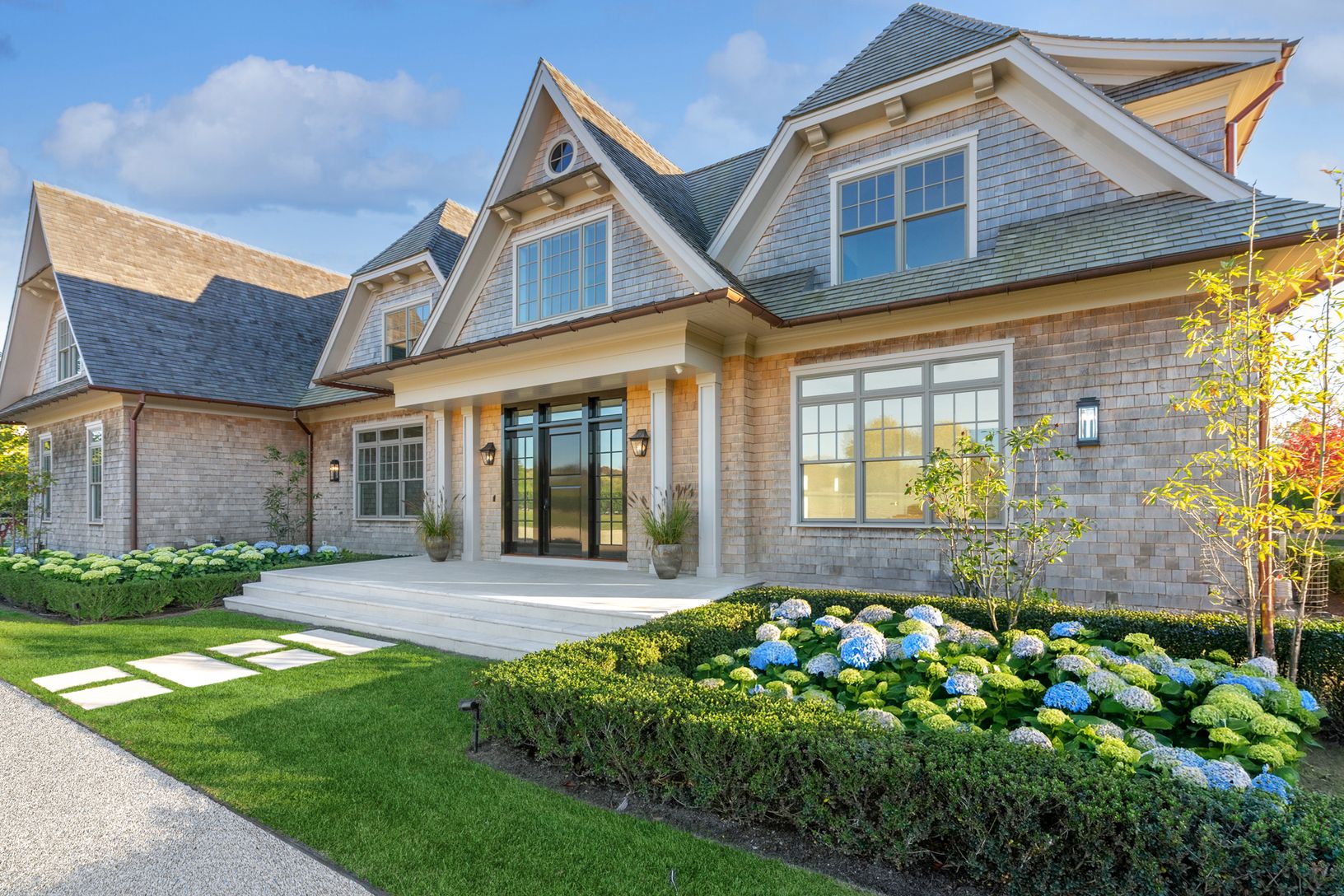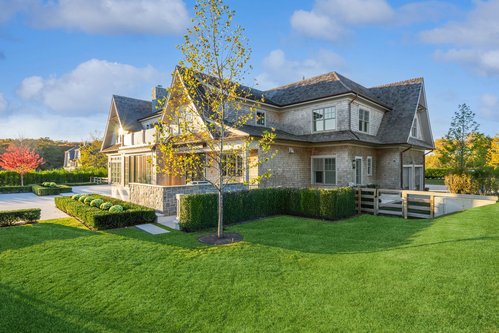 The estates on Seven Ponds Towd Road are a world unto itself. An established partnership between two preeminent firms, Parlato Development Group, and Sciame, this collaboration draws on decades of experience and earned reputations to bring this thoughtful and artfully designed residence to the Hamptons. Experience and intention motivated the design and material decision. Located on a private drive, stone piers and an extensive landscape design