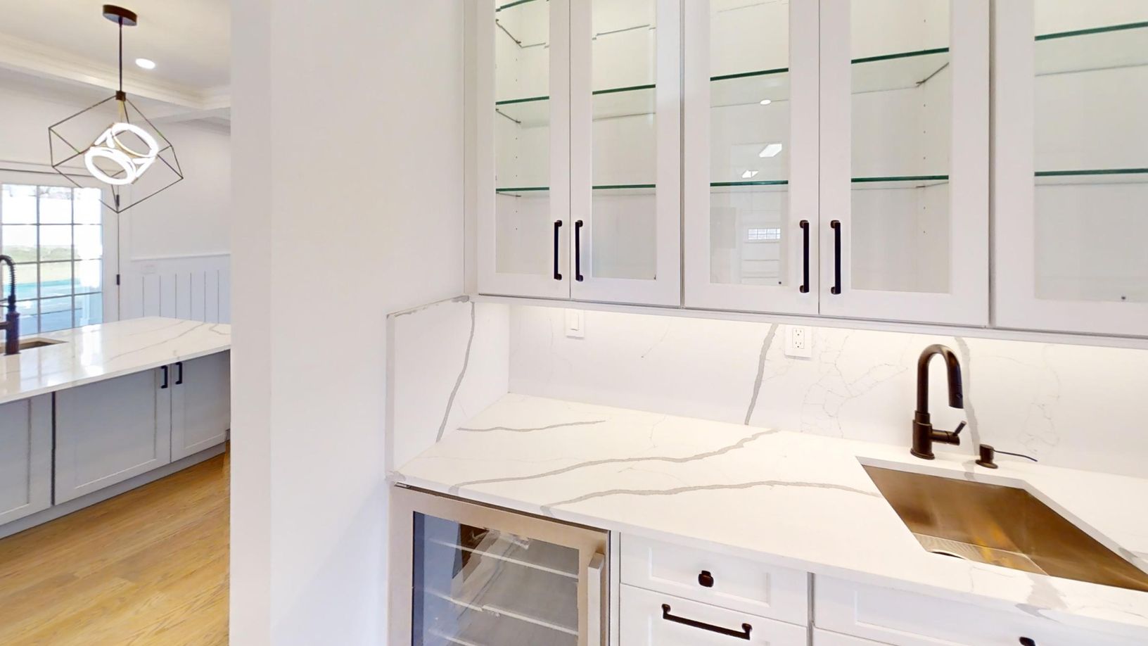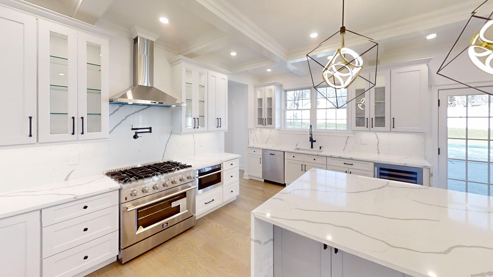 This new, custom-built, Nantucket style home has it all! Open layout features a grand entry with cathedral ceilings and chandelier, great room with built-in benches on both sides of the gas fireplace, formal dining room and gourmet kitchen. The kitchen features a six-burner gas stove with pot filler, double wall convection oven, convection microwave, 2 dishwashers, beverage cooler and large center island with 2nd sink. Primary suite on main fl