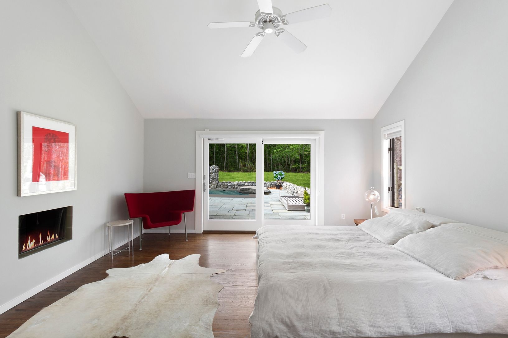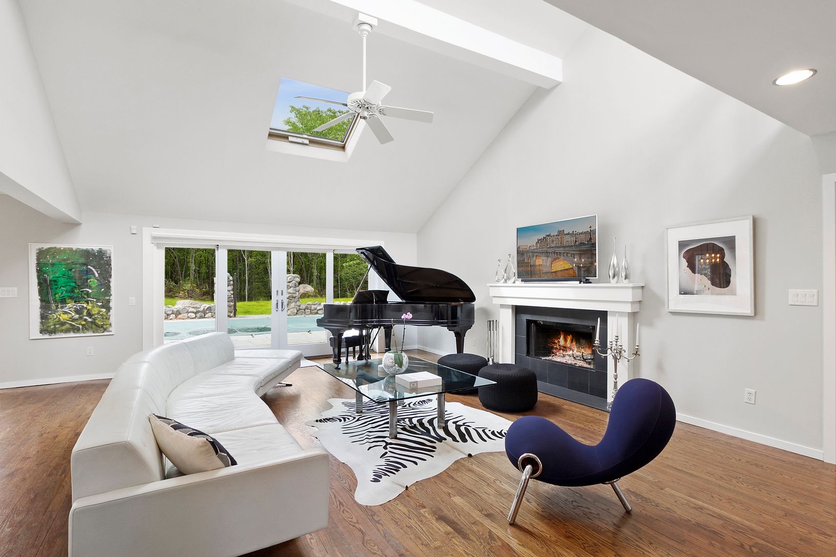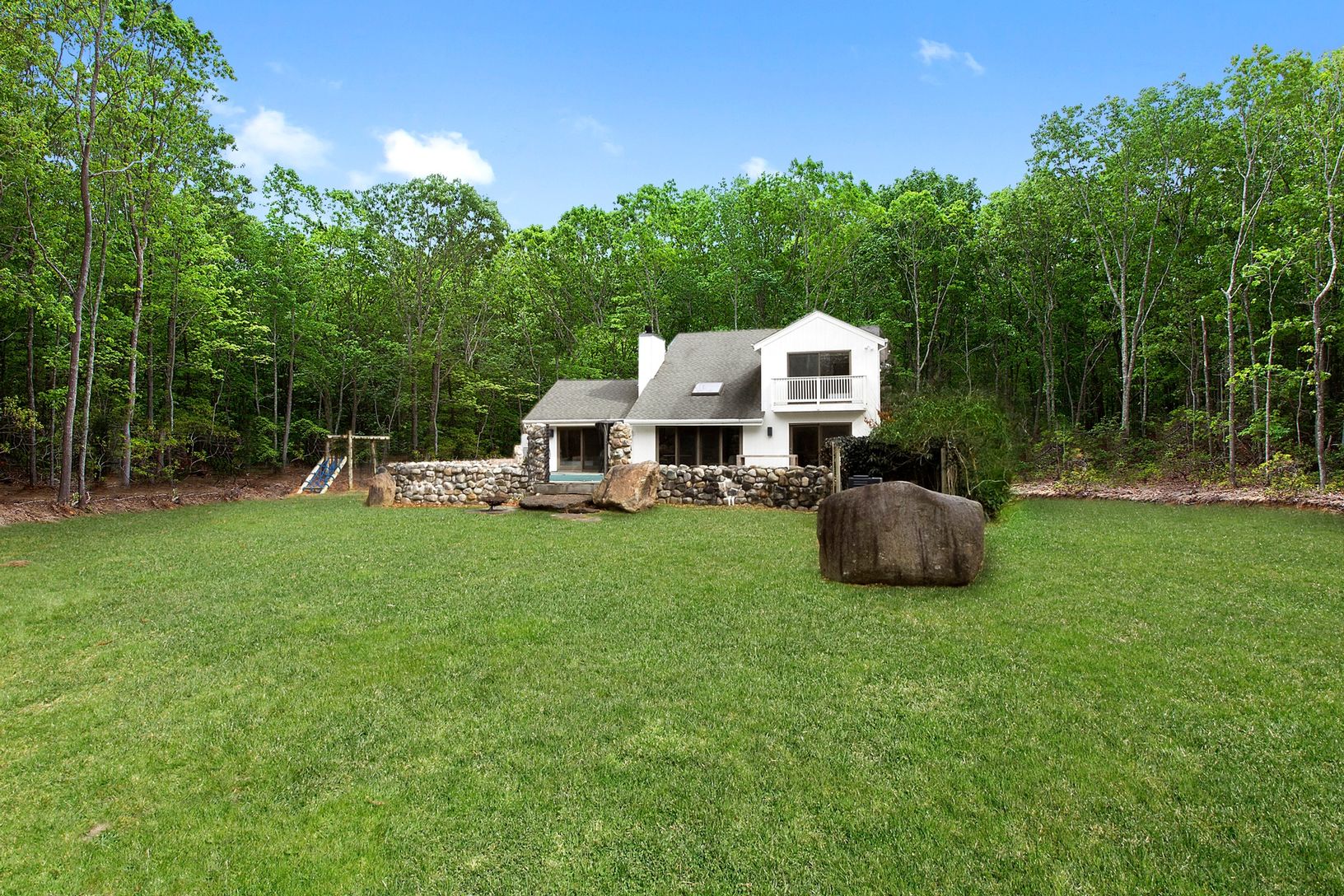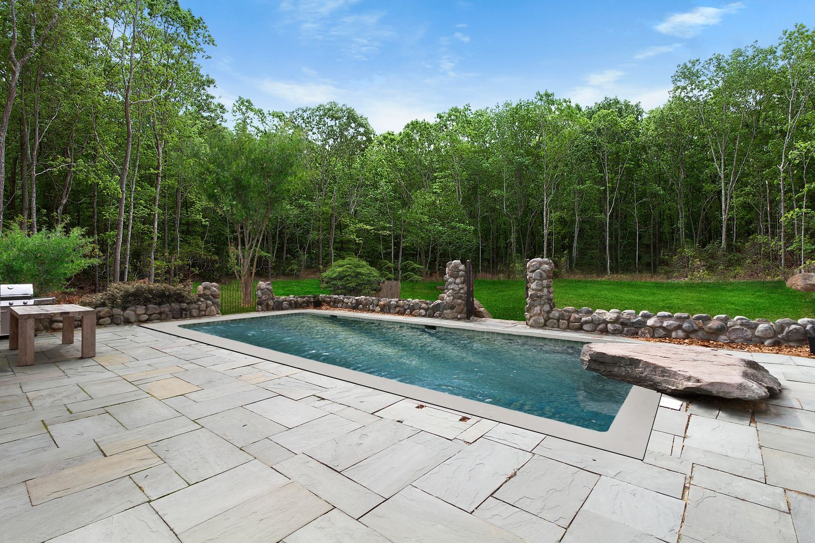 A private driveway leads you to this lovely, upscale contemporary situated on a serene two acre property with an open lawn, indigenous grasses, and towering trees. Custom stonework and bluestone decking compliment the heated saltwater pool. Inside, four bedrooms, with first floor master suite, three baths, an open living plan with soaring ceilings and custom stone fireplace, invite you to entertain or just relax and enjoy this wonderful, tranq