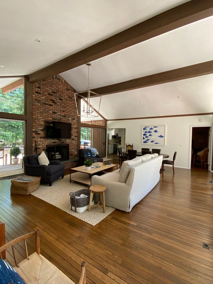 Located in the Northwest Woods area of East Hampton, and just 5 minutes to Sammys Beach, this 3 bedroom 2 bathroom 1000+/- sq ft house is surrounded by parks and marinas and is close to East Hampton and Sag Harbor Villages. The open concept main living area boats vaulted ceilings and floor to ceiling windows that allow natural sunlight to pour in. Wood beams and a cozy fireplace warm the space. Sliding glass doors invite indoor/outdoor enterta