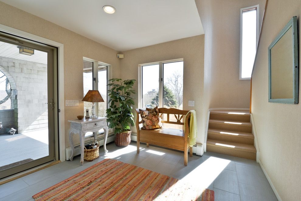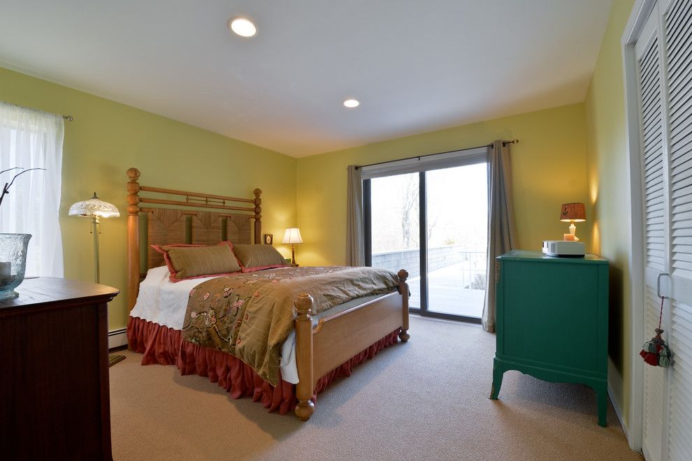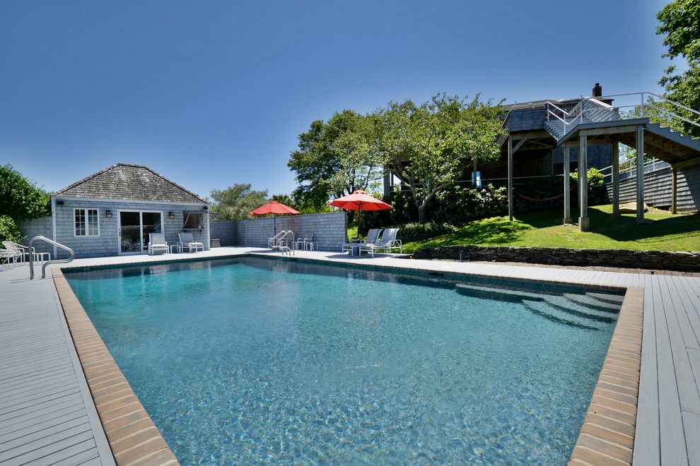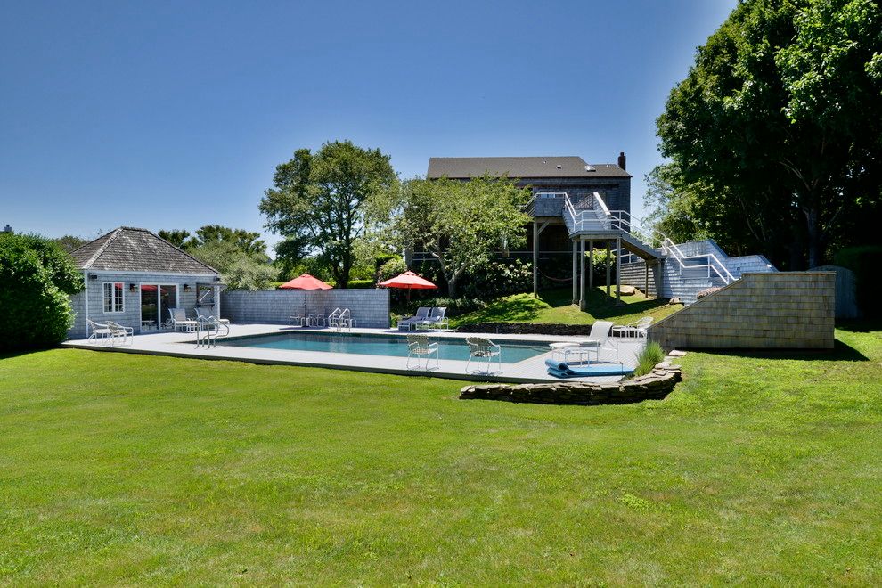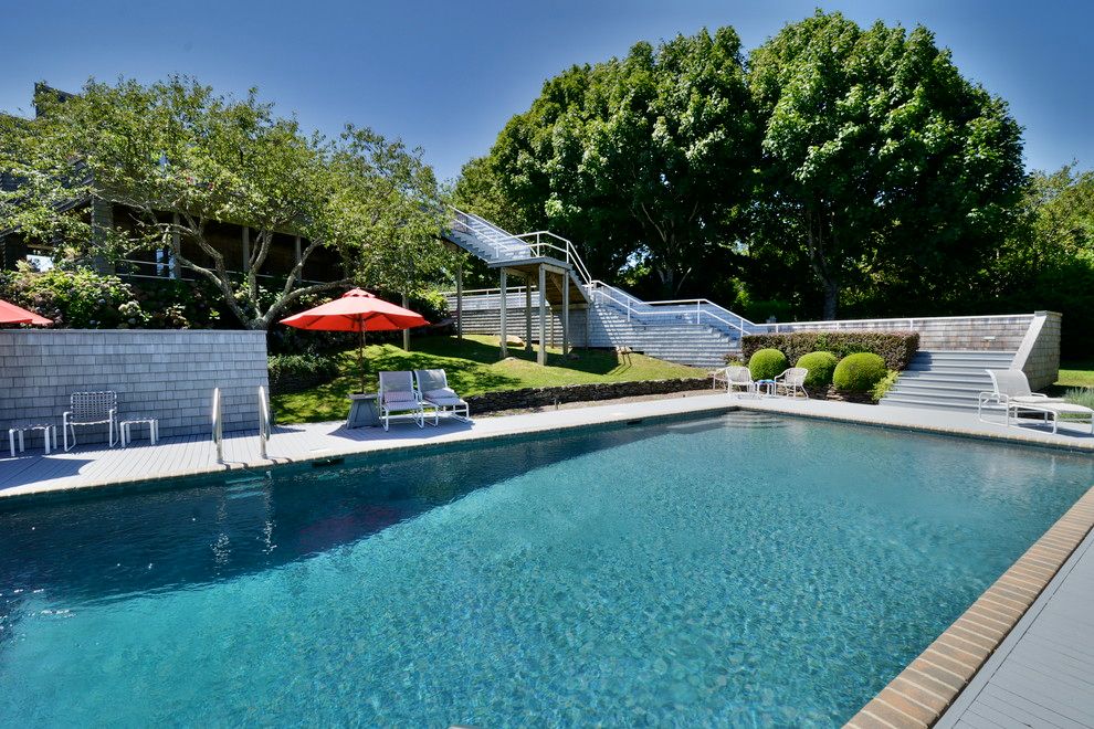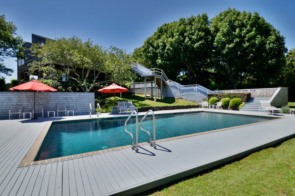 Nestled on a serene cul de sac, this fabulous custom Hollenbeck Contemporary home is situated on lush acre adjacent to 900 acre County Parkland. Upside down design maximizes wonderful light, both lake & sunset view and fabulous decking down to glorious 20 x 40 heated gunite pool/poolhouse, vast decking and beautiful gardens, lending to amazing summer enjoyment and privacy. Upper level offers spacious, beamed Cathedral living room, dining,