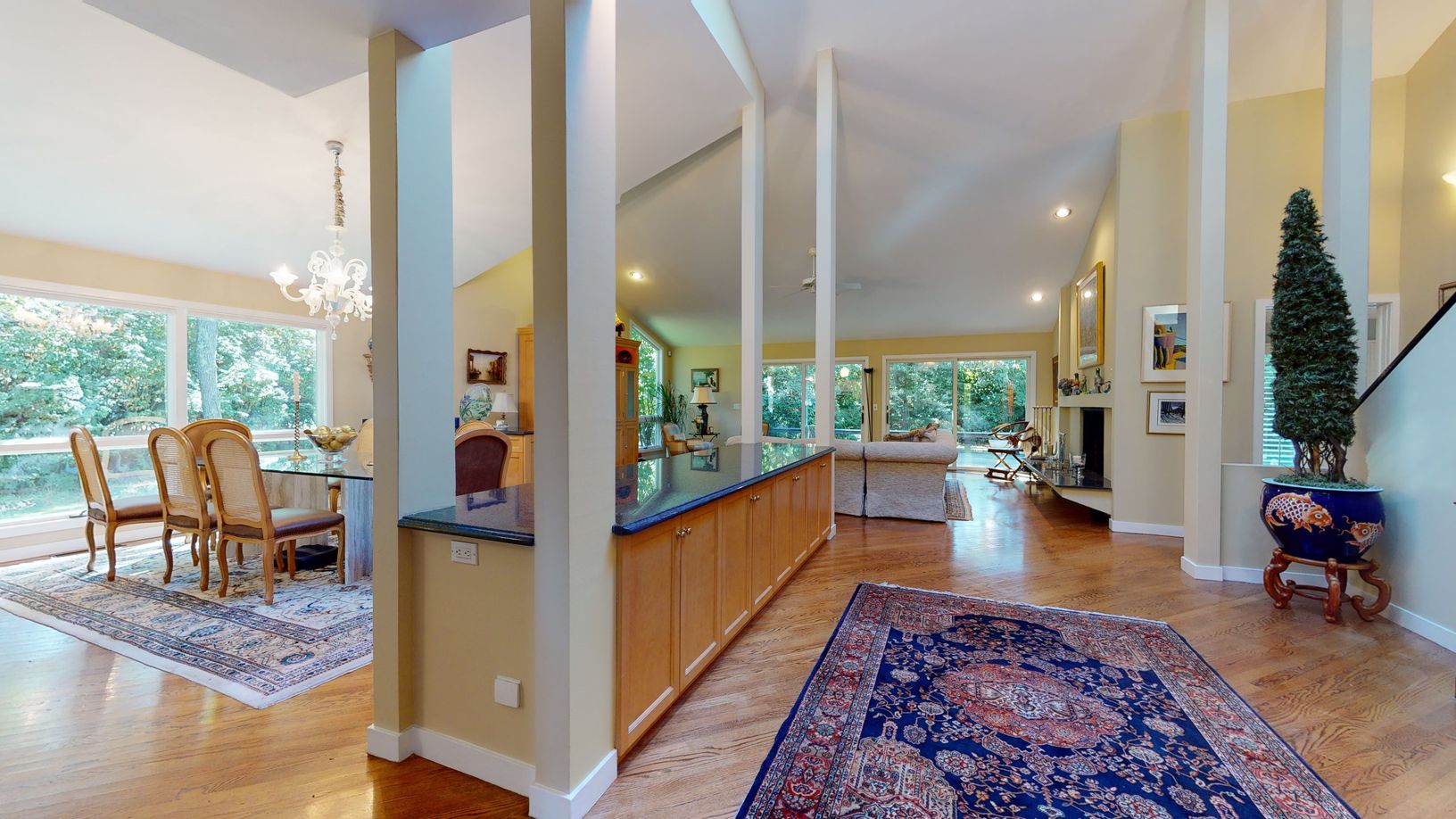 Rare opportunity to own just shy of 1.5 acres on Remsenburg's well known Cedar Lane. The long private driveway leads to this meticulously kept and cared for 3 bed 2.5 bath home. Open layout with eat-in-kitchen and expansive living room w/cathedral ceilings, fireplace and sliders leading to a large back deck and heated gunite pool. Spacious first floor primary suite. Full basement with a cedar closet perfect for a future finish, oversized 2.5 c