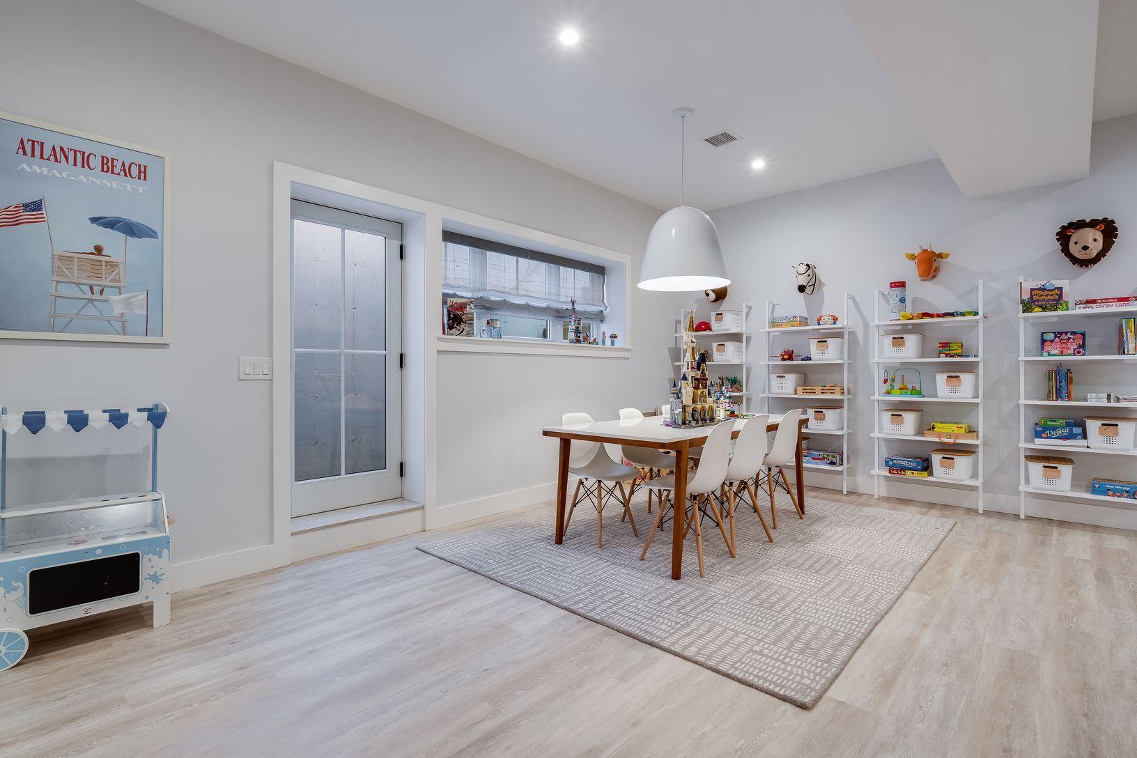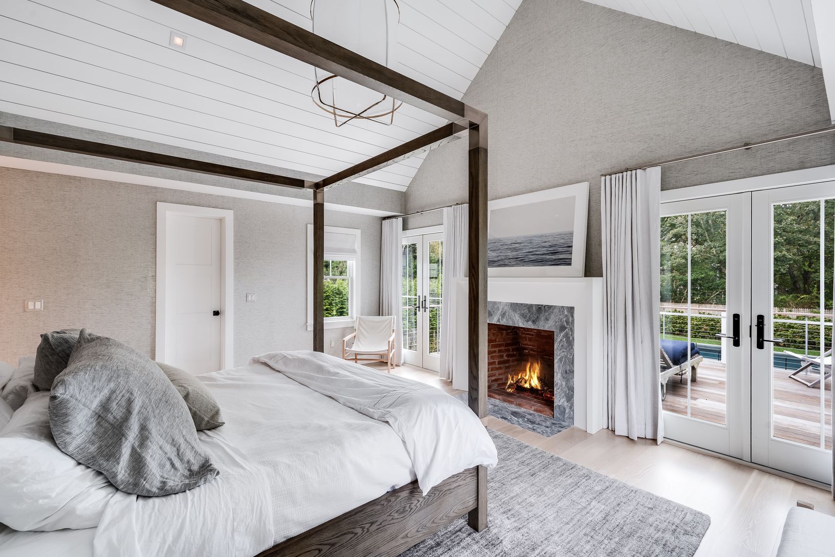 Recently completed in the highly coveted Amagansett Lanes ~ this six bedrooms five and a half bath home offers all luxury amenities with design by Alicia Murphy Design. Enter into double height entryway into open space living with custom chefs kitchen including sub zero appliances and oversized carrera island, living room with fireplace and television, and generous dining room. The remainder of the first floor includes a den and first floor en