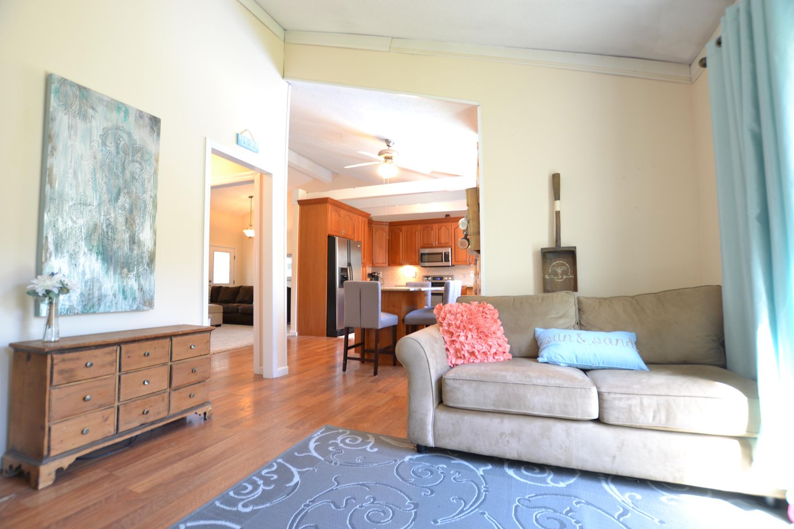 One level home with open living room, kitchen, den area. Expansive backyard with 20x40 heated pool and large deck area. Part of Newport Beach development with private boating and beach rights.