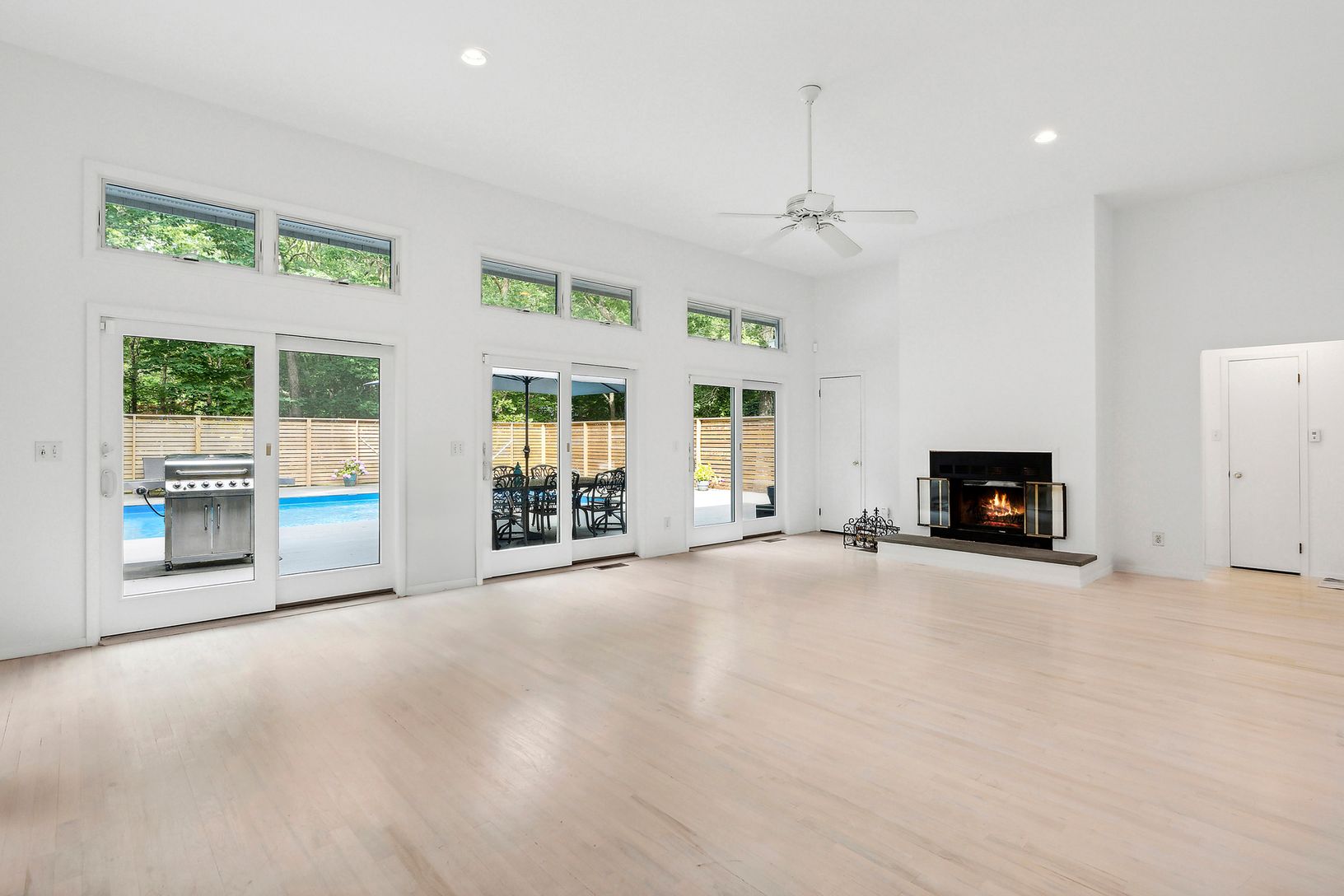 A pool for outdoor fun, a Viking stove with additional cooktops for gourmet meals. A back patio for dining al fresco and entertaining, plus a wood burning fireplace for cold, off-season nights of peace and solitude. This freshly painted one-story contemporary has an oversized sun-filled great room offering an open floor plan, extra high ceilings, and a wall of