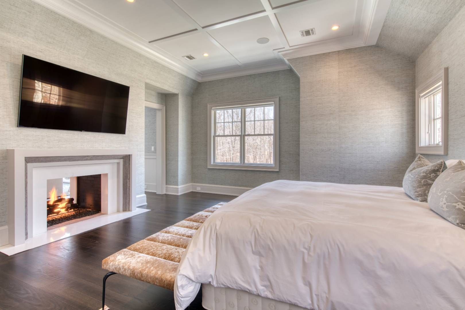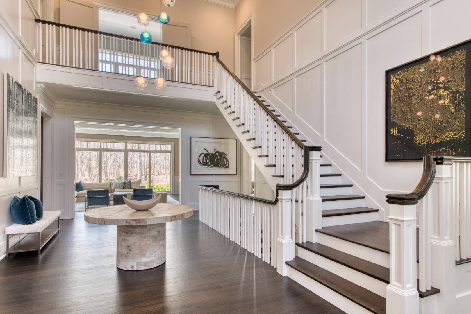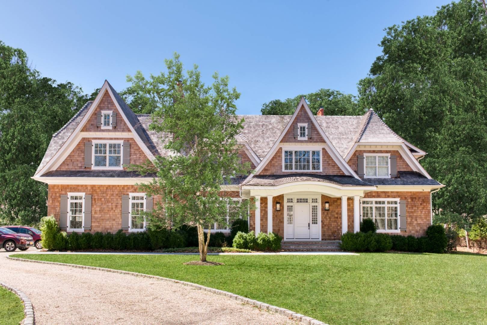 Discover your perfect summer escape at 43 North Haven Way, a traditional 9,500+/- sq. ft. home situated on 2 acres in the private community of North Haven Point. This exquisite property offers an unparalleled combination of elegance, comfort, and premier amenities in a breathtaking setting. This grand estate welcomes you with an elegant approach to a large driveway on a desirable corner lot. Step into a double-height foyer that opens to wide,