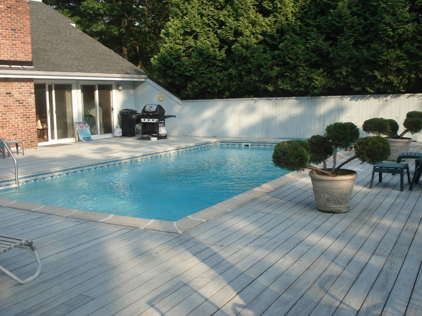 Five bedroom Contemporary on a quiet cul-de-sac. Wonderful open and airy floor plan with living room with fireplace, dining area and separate kitchen. Large private deck surrounds the pool for sunbathing and gathering for afternoon cocktails, with an all-weather tennis court waiting for summer activity! Finished basement with large game
