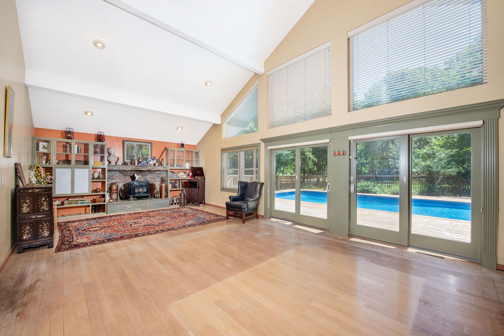 One of the most unique properties in the Hamptons/East End providing privacy and nature. Surrounded on all sides by 1,000s of acres of forever preserved Pine Barrens with miles rolling hill hiking trails, ponds to explore or ride your horse. Yet barely two miles from Main Street Hampton Bays. The main House with vaulted ceilings, beautiful natural light, wood burning stove, First Floor Master Bedroom and great second floor office/den/bedroo