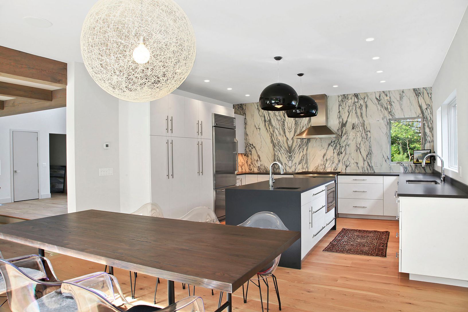 New Post and Beam residence by Yankee Barn. Step into the double height grand entry that gently leads you to the two story living room with large glass sliders and double fireplace that is shared with the sitting room. The kitchen has GE Profile appliances and is open to the dining area. Completing the first floor is an office with bath, laundry room, additional bath and attached garage. The second floor has a large master suite with walk-in