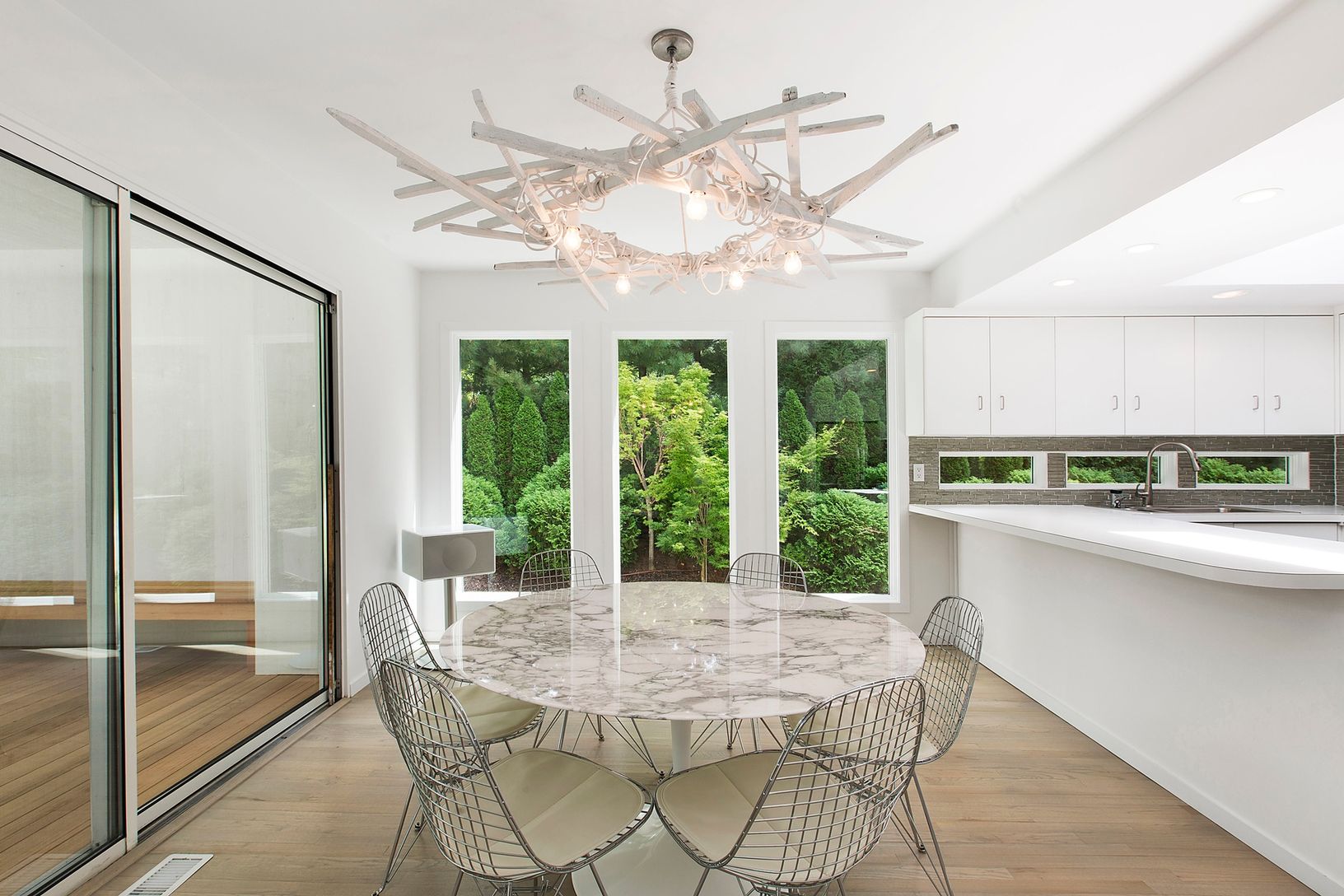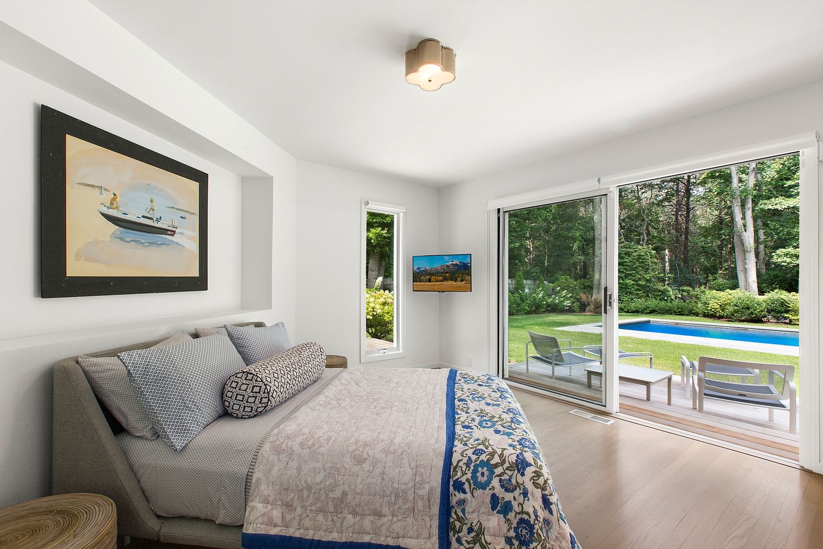 Situated in Wainscott South just minutes to ocean beaches or shopping in the villages, this classic contemporary has been recently renovated from top to bottom. Offering four bedrooms and four baths, it has an open floor plan allowing for easy entertaining in a modern setting. The spacious double height living room with fireplace leads out to the sun drenched backyard which features a heated gunite salt water pool, decking and covered porch fo