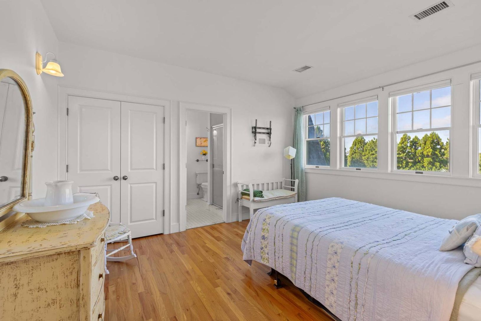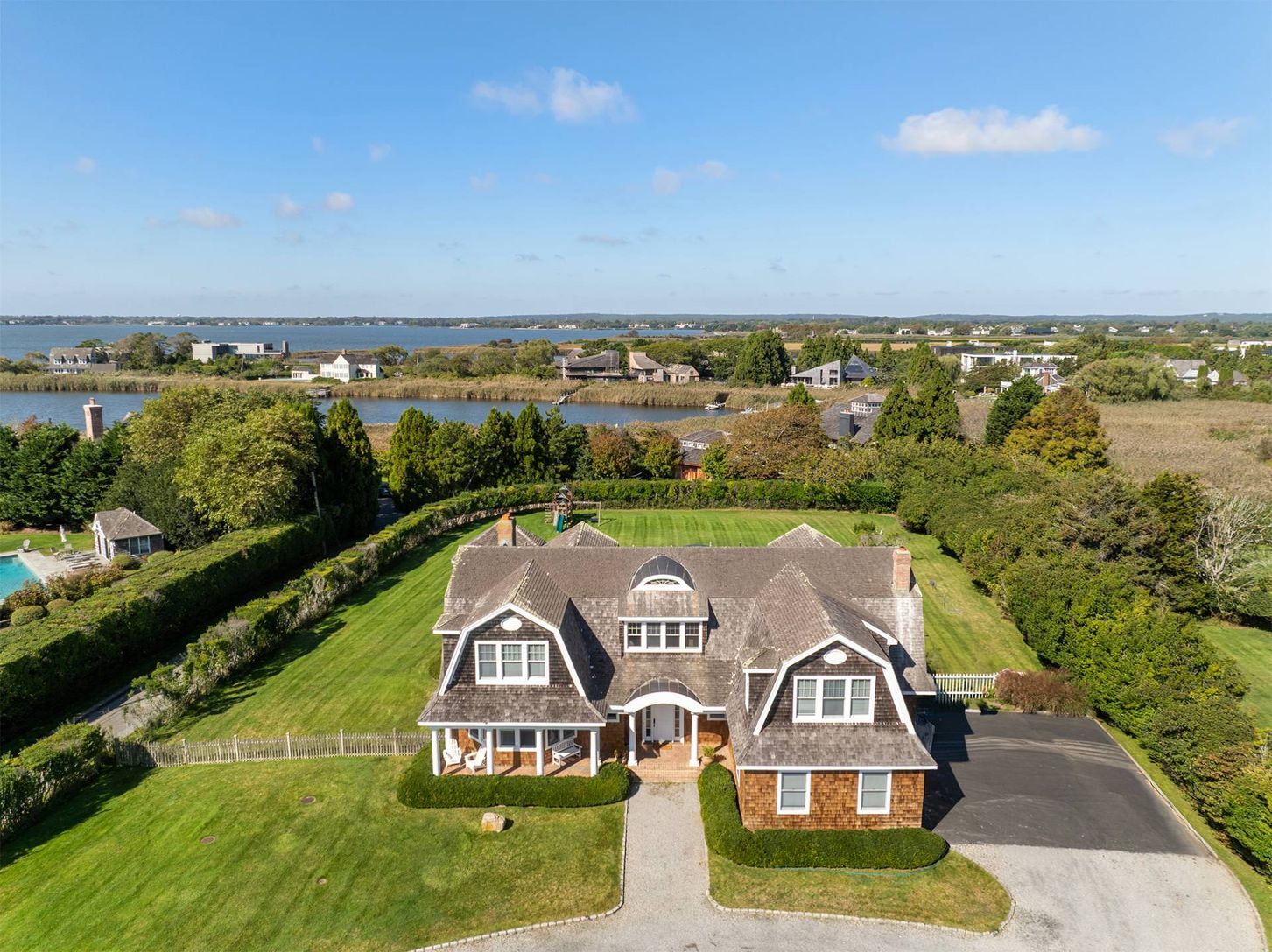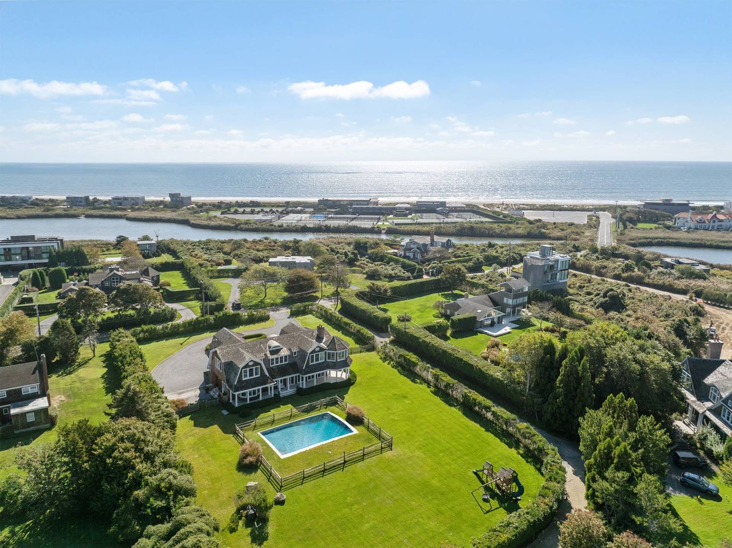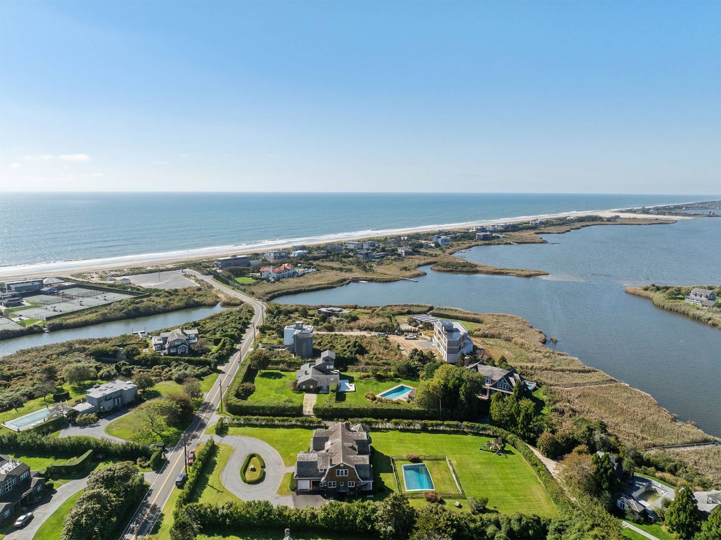 South of the Highway on the storied Jobs Lane in Bridgehampton, just moments from the ocean, this iconic estate offers a rare opportunity to experience Hamptons living at its most refined. Set on a 1.2 acre parcel with views of both Mecox Bay and the Atlantic Ocean, the property blends sophisticated traditional architecture with serene, coastal charm. Spanning 5,500 +/- sq. ft., the residence features 5 bedrooms and 4.5 baths across 2 levels o