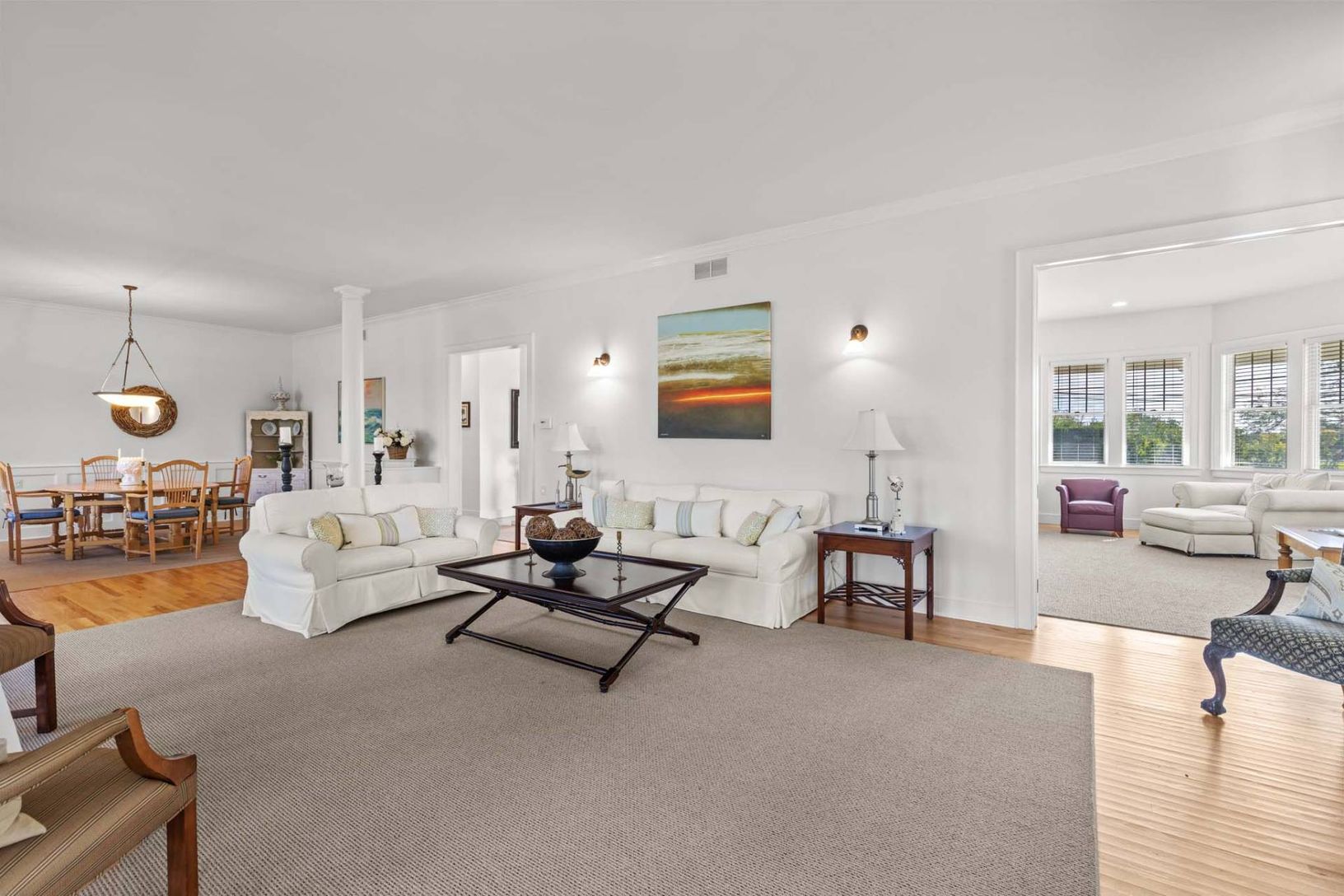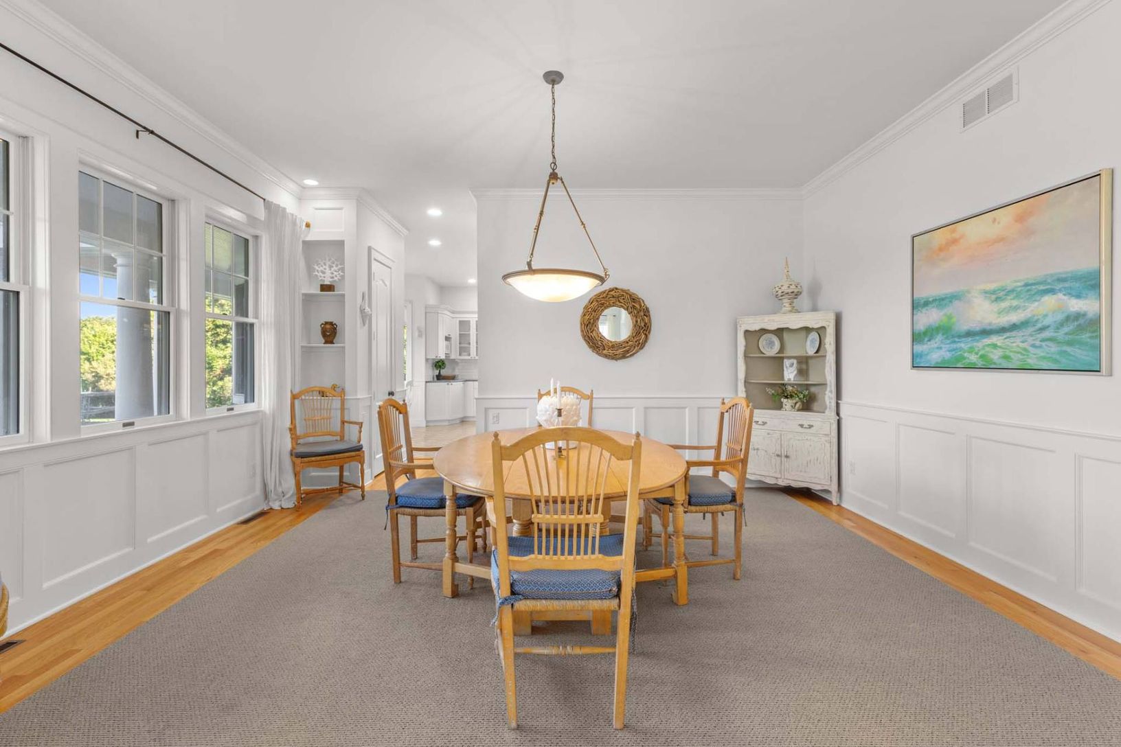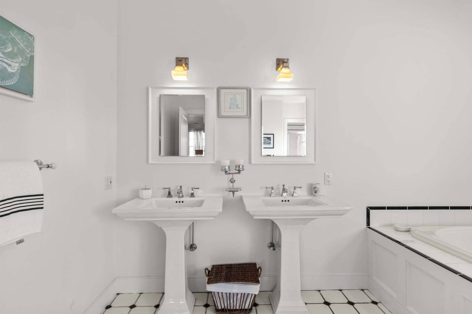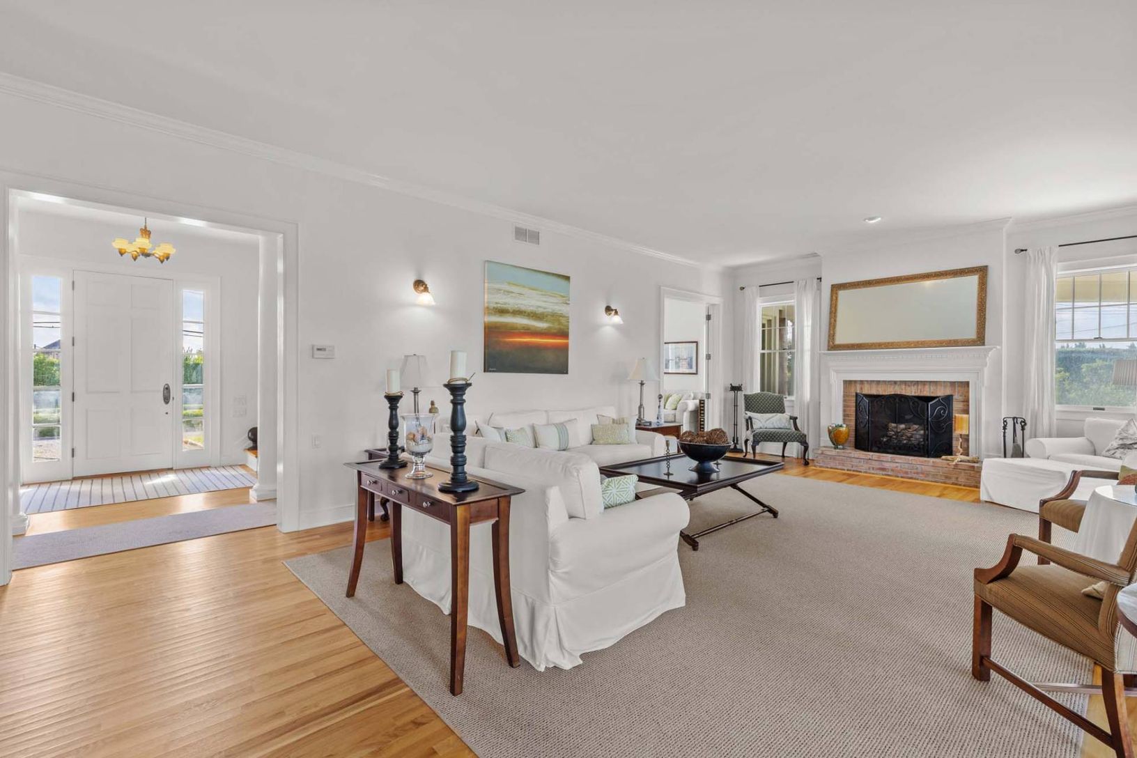 South of the Highway on the storied Jobs Lane in Bridgehampton, just moments from the ocean, this iconic estate offers a rare opportunity to experience Hamptons living at its most refined. Set on a 1.2 acre parcel with views of both Mecox Bay and the Atlantic Ocean, the property blends sophisticated traditional architecture with serene, coastal charm. Spanning 5,500 +/- sq. ft., the residence features 5 bedrooms and 4.5 baths across 2 levels o