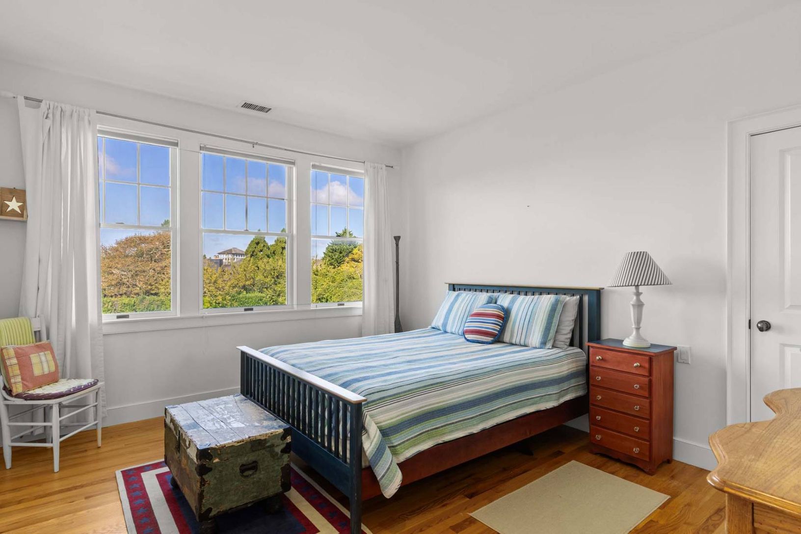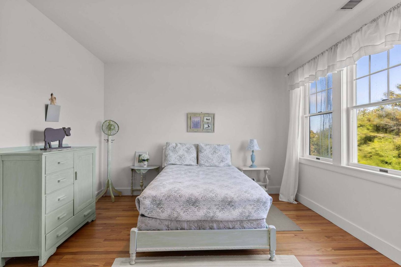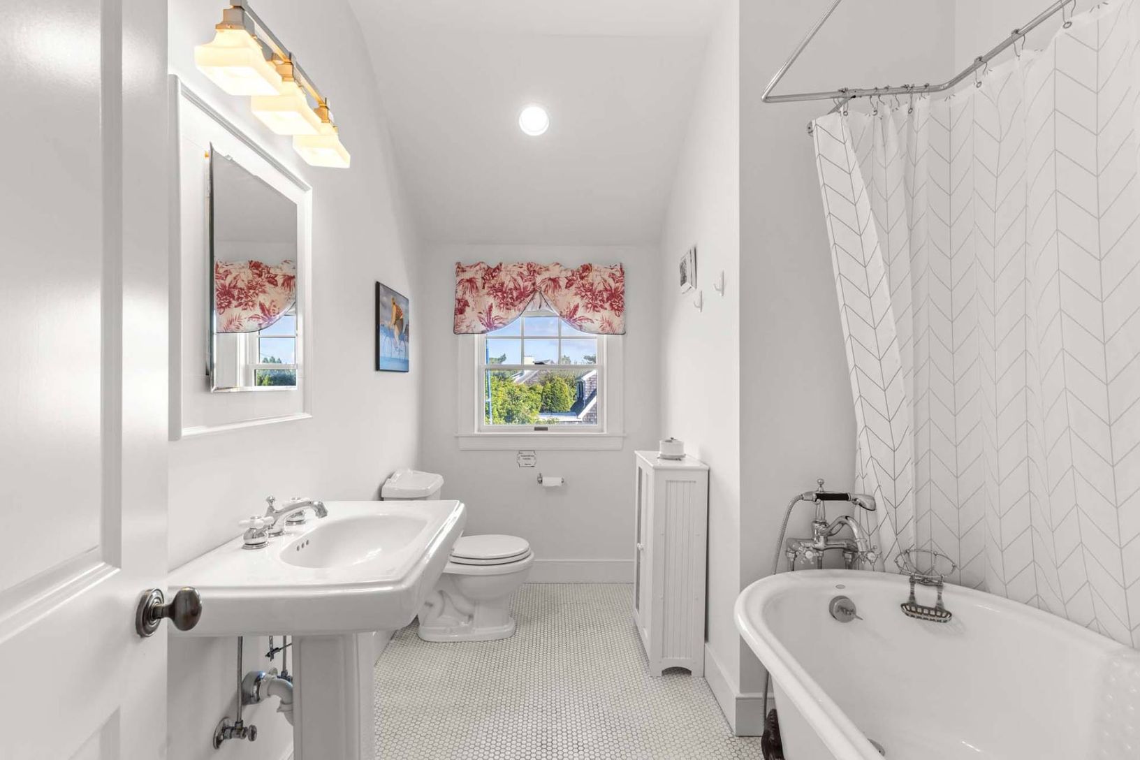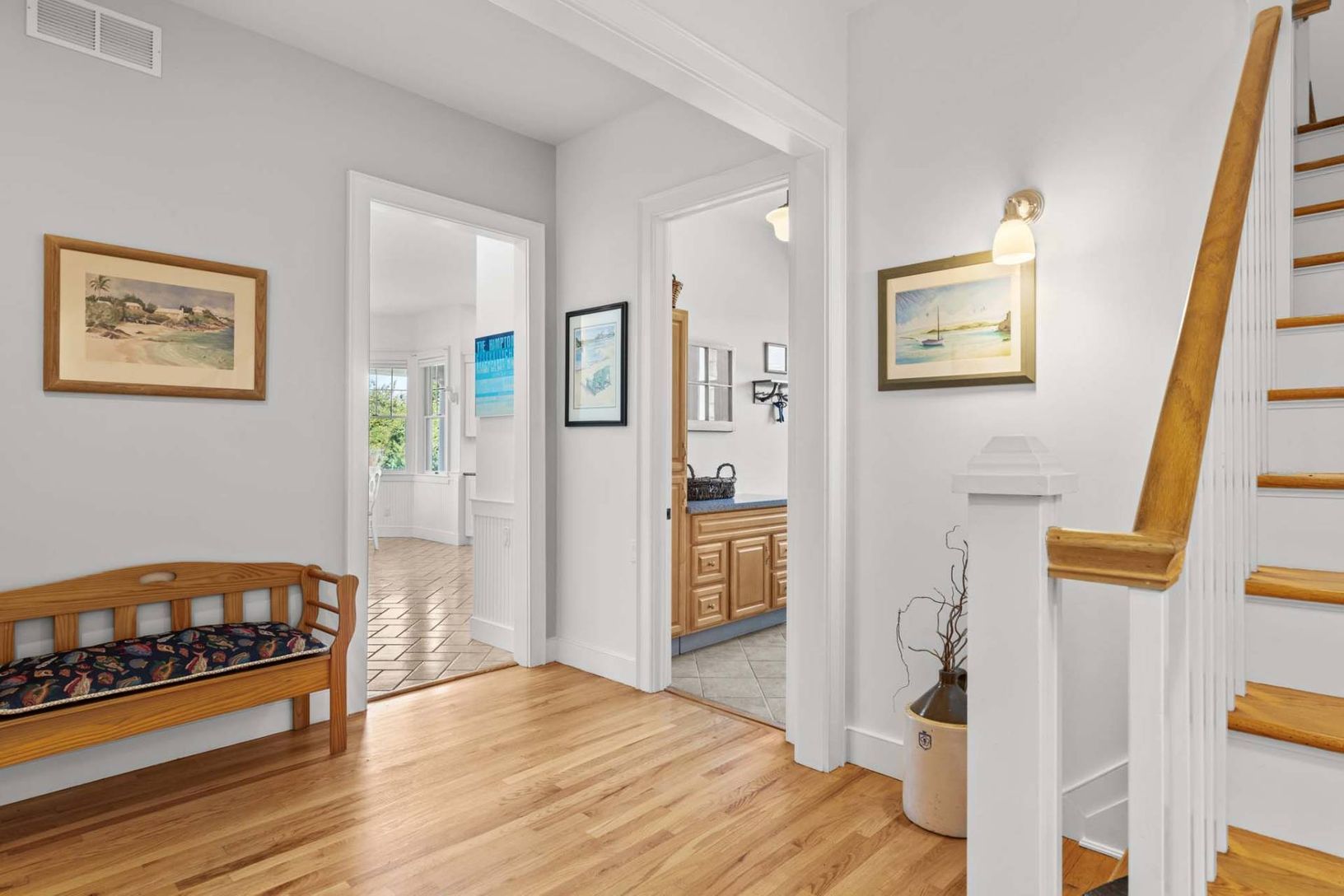 South of the Highway on the storied Jobs Lane in Bridgehampton, just moments from the ocean, this iconic estate offers a rare opportunity to experience Hamptons living at its most refined. Set on a 1.2 acre parcel with views of both Mecox Bay and the Atlantic Ocean, the property blends sophisticated traditional architecture with serene, coastal charm. Spanning 5,500 +/- sq. ft., the residence features 5 bedrooms and 4.5 baths across 2 levels o