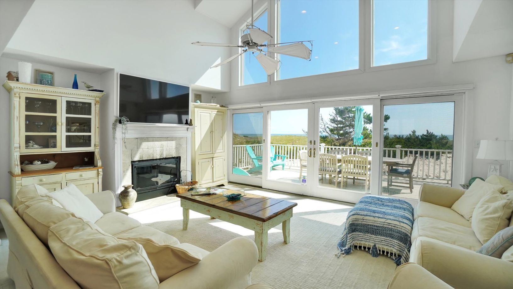 Your Dune Road dream home opportunity is here! Imagine living on one of the most beautiful beaches in the world with panoramic oceanfront views from every room in the house! This four-bedroom, four-bath home features an open floor plan with vaulted ceilings, and floor to ceiling windows in the living room providing fantastic natural light from sunrise to sunset. Each bedroom has its own private balcony with ocean views. The living room and pri