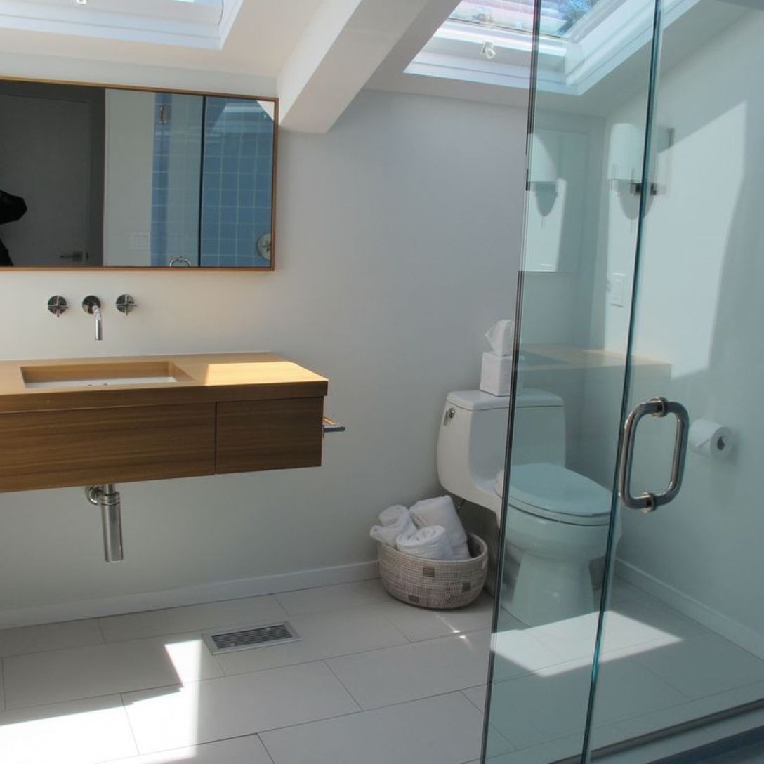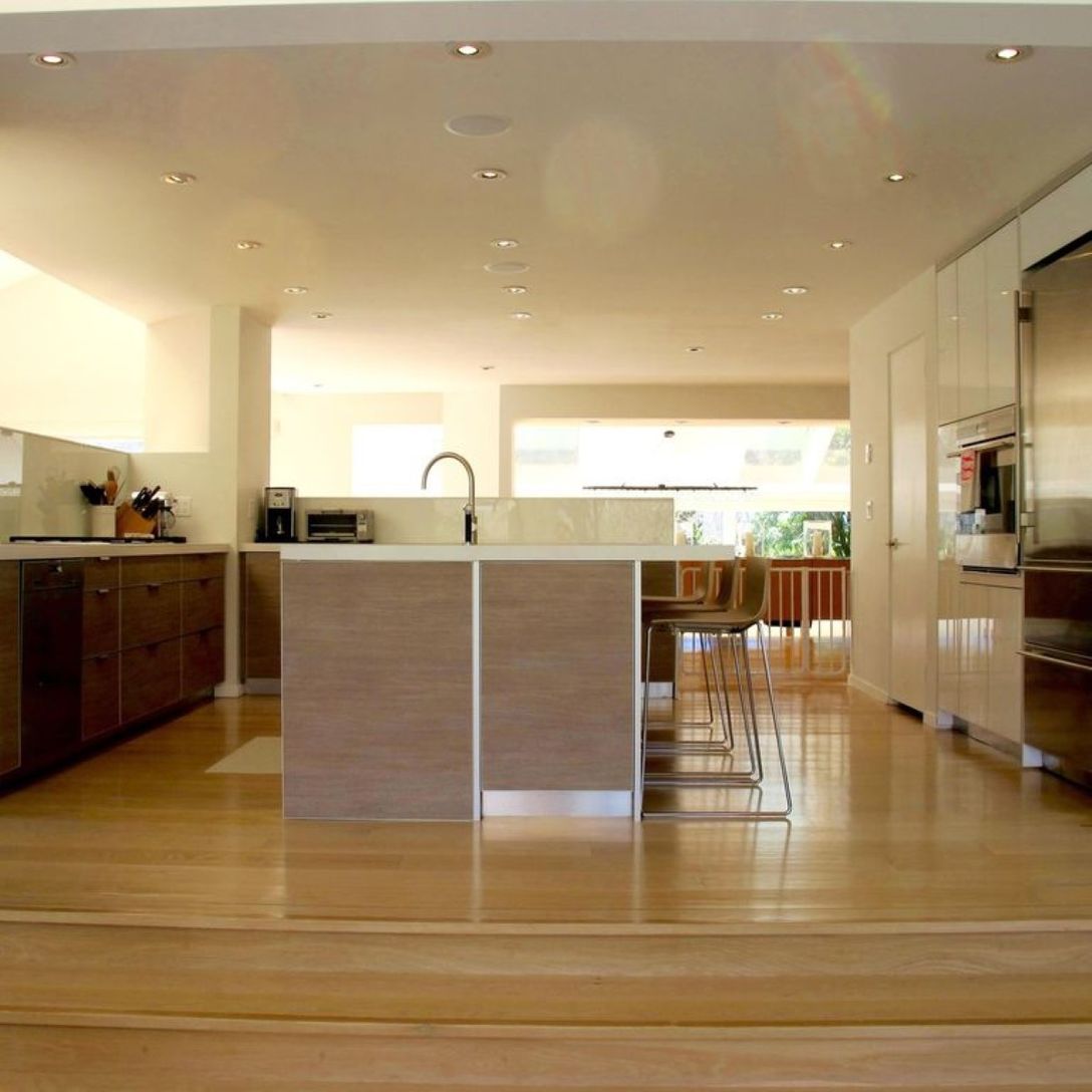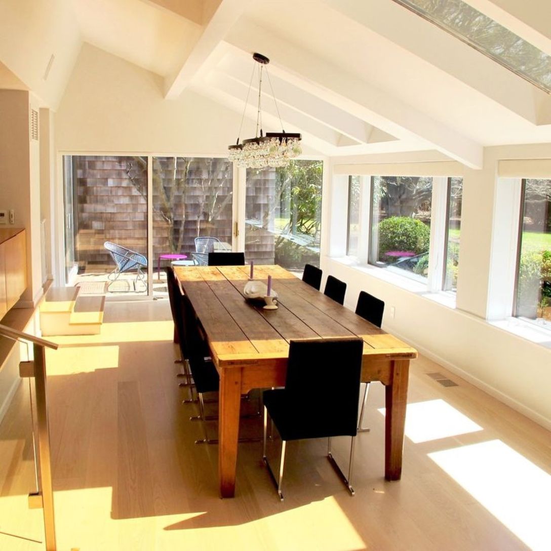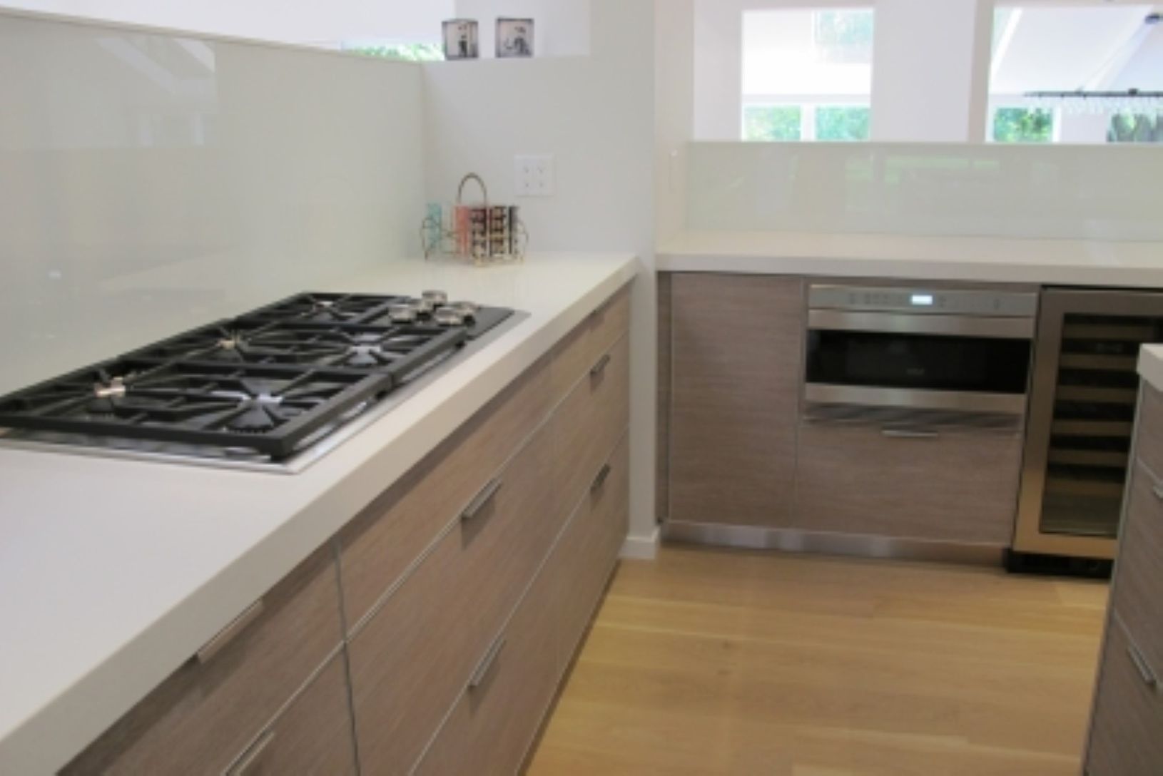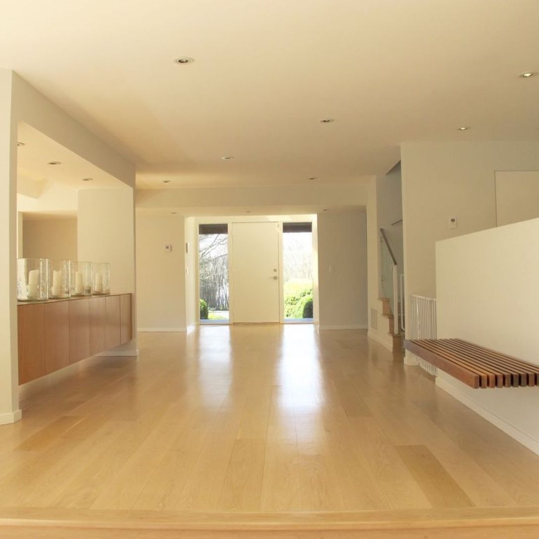 This original Futterman house has been subjected to a modern renovation that aimed to preserve the integrity of Futterman's original structure - soaring ceilings, abundance of natural light, open floor plan, and modernist angular/architectural design. A sleek New Contemporary Kitchen has a Wolf 5-burner cook top, Sub-Zero stainless steel refrigerator and wine cooler, Wolf oven, 2 Meile dishwashers, Julien deep chef's sink with Dornbracht fauce