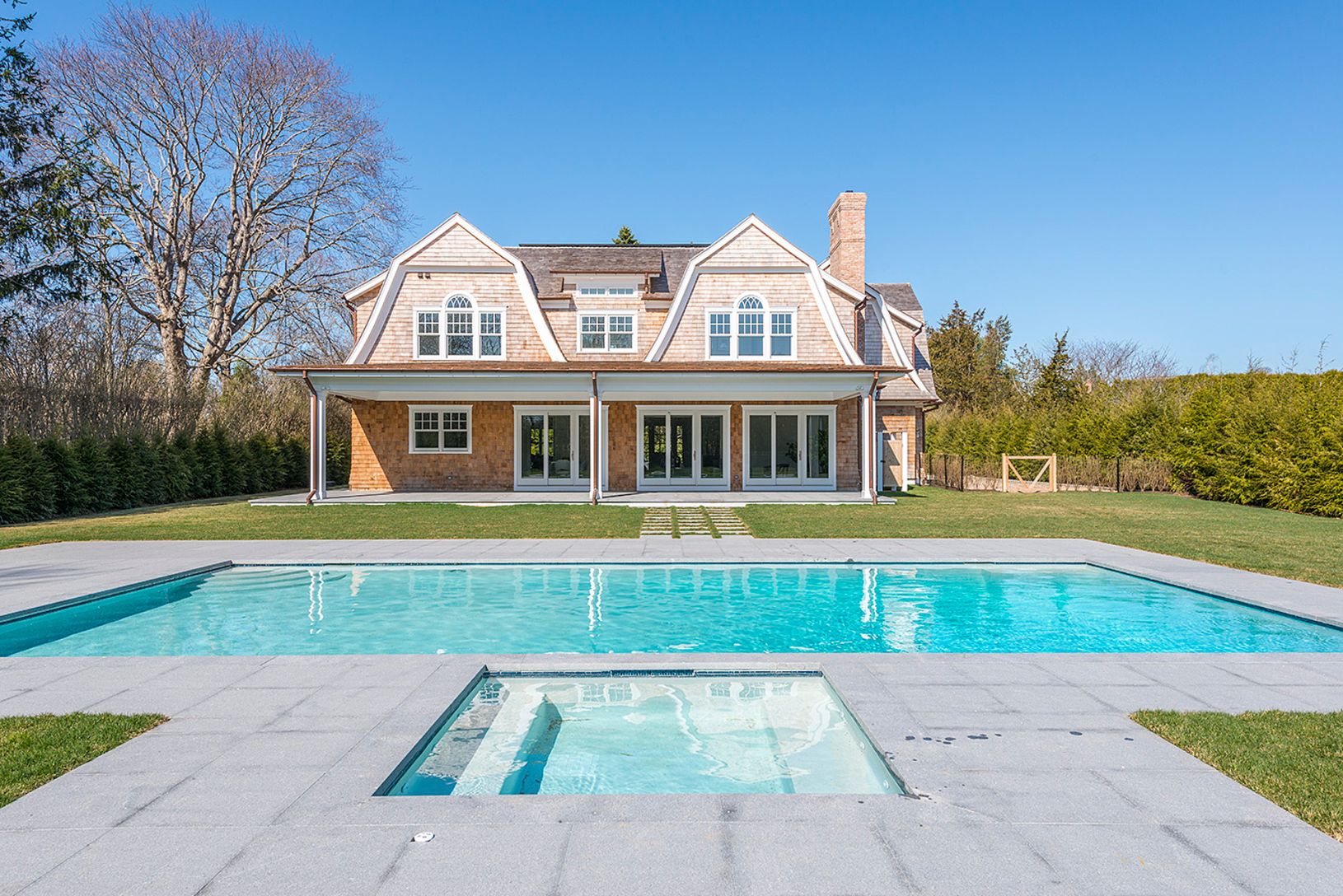 Live the Hamptons dream, in a fabulous premier-quality new construction estate in Southampton created by the renowned Farrell Building Company. Resort-like living is yours on 1 acre graced by a heated gunite swimming pool, and relaxing spa. This meticulously-designed 7 bedroom home is surrounded by pristine landscaping on peaceful, picturesque property. It offers nearly 5,339 square feet of elegantly-appointed living space on 3 levels, and aff