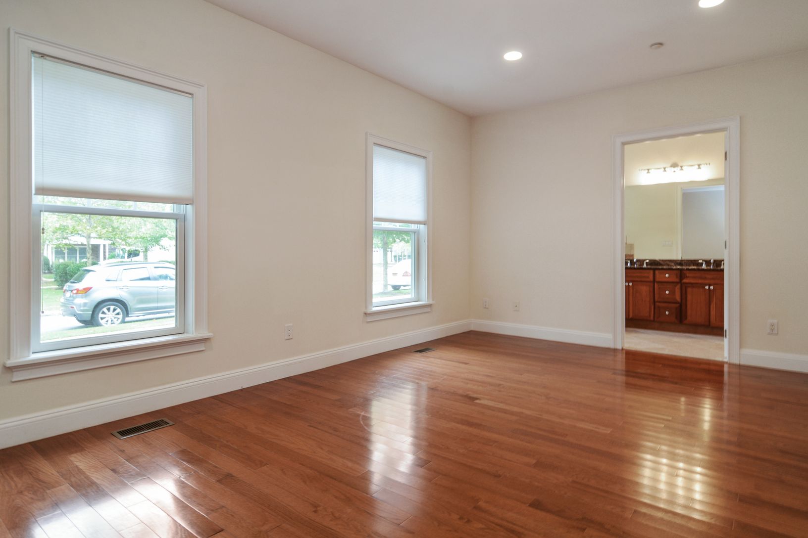 The Courtyards and Villas at Southampton offered this unit as their model unit with all upgrades possible. It features a master suite on main level and an open floor plan with upgraded hardwood floors and stone double-height fireplace. The split staircase has a loft area great for a home office and then two bedrooms and full bath. This corner unit offers lots of light and privacy. The back patio is perfect for outdoor entertaining. There is a