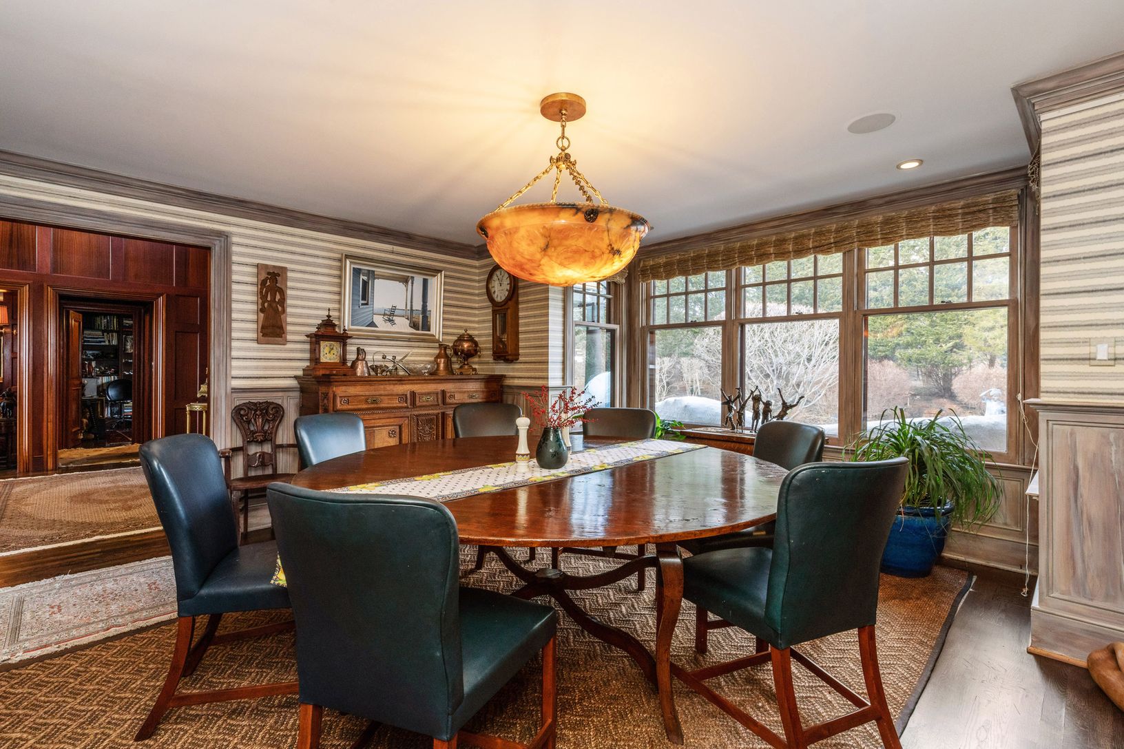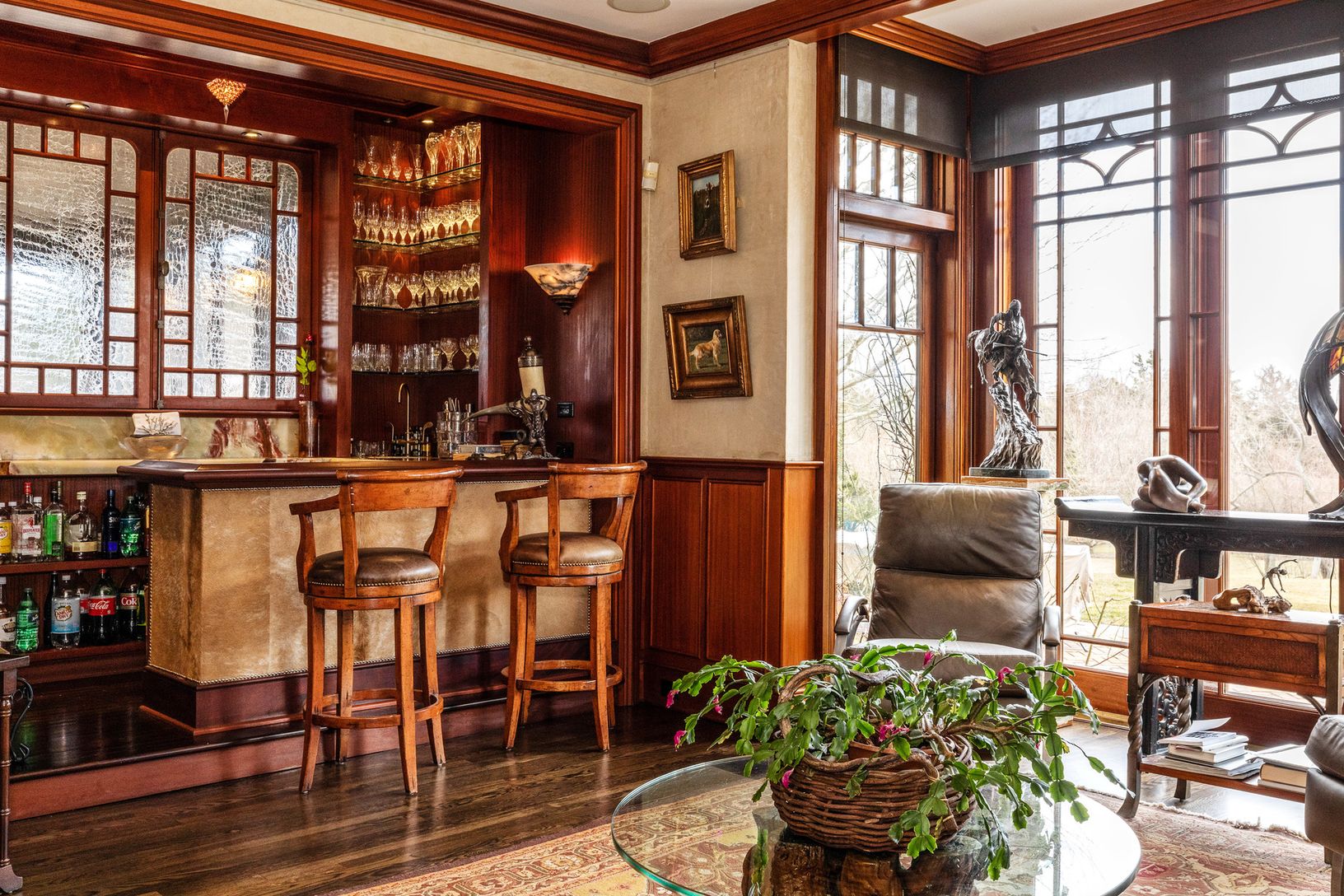"Welcome to Hobby Hill: This 8000+/- sq ft retreat is warm and welcoming. Sitting atop 1.7 +/- lush and quiet acres, the main house features an awe-inspiring, mahogany paneled foyer leading to the sunroom, office, library, and dining room - giving way to an expansive chef's kitchen with a Viking stove, subzero refrigerator, and top-of-the-line, stainless steel appliances.