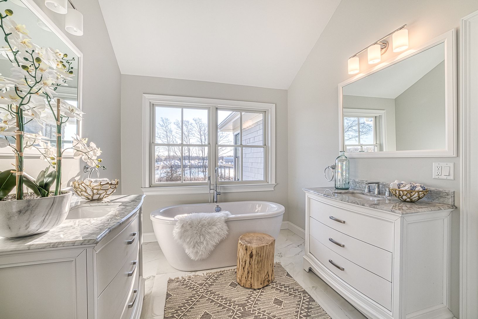 Hamptons Chic New Construction Waterfront home with Deep Water Dock & nearly 4,000 s.f. of living space, 5 Br, 5.5 Ba & Double Height Great Room with Fireplace and a wall of windows to take in the views. Gourmet Chef Kitchen with Quartz Counters and Island suitable for entertaining guests. Second Floor Master Suite with Private Balcony providing exquisite views of Moriches Bay while overlooking the 20x40' saltwater pool. Located outsid