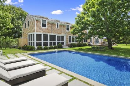 Nestled down a flag lot off one of the most prestigious roads, south of the highway, in Bridgehampton resides this recently renovated 2-acre Estate -- complete with a heated Gunite pool, rolling lawn, and Har-Tru tennis court. The farm chic interior boasts a living room with fireplace and double height ceiling, an upgraded country kitchen with granite counter-tops and stainless steel appliances, 7 bedrooms, 5.5 marble baths, an integrated spea