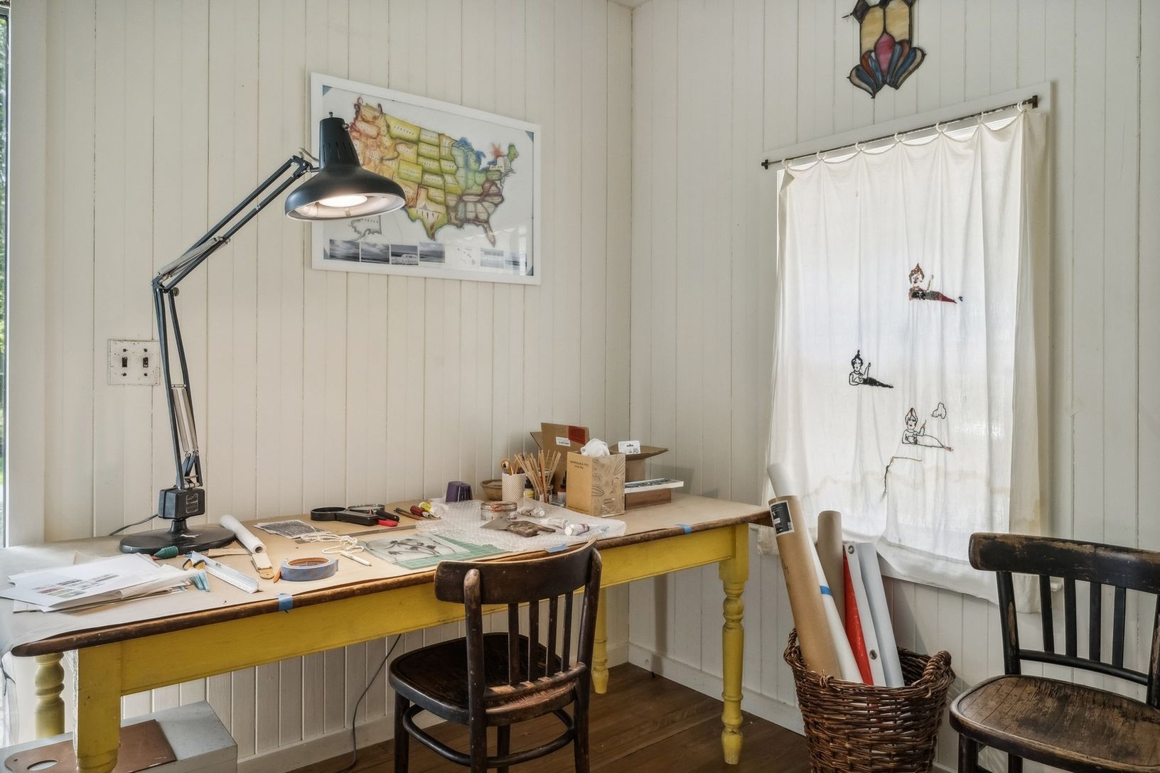 Welcome to the historic home of renowned American artist Saul Steinberg, whose iconic work graced the cover of The New Yorker for nearly six decades. This property, nestled in the heart of Springs, is considered a cornerstone of the abstract expressionist movement. The area is also notable for being the residence of one of contemporary music's most influential artists and the acclaimed American fashion designer Judith Leiber, who lived just a