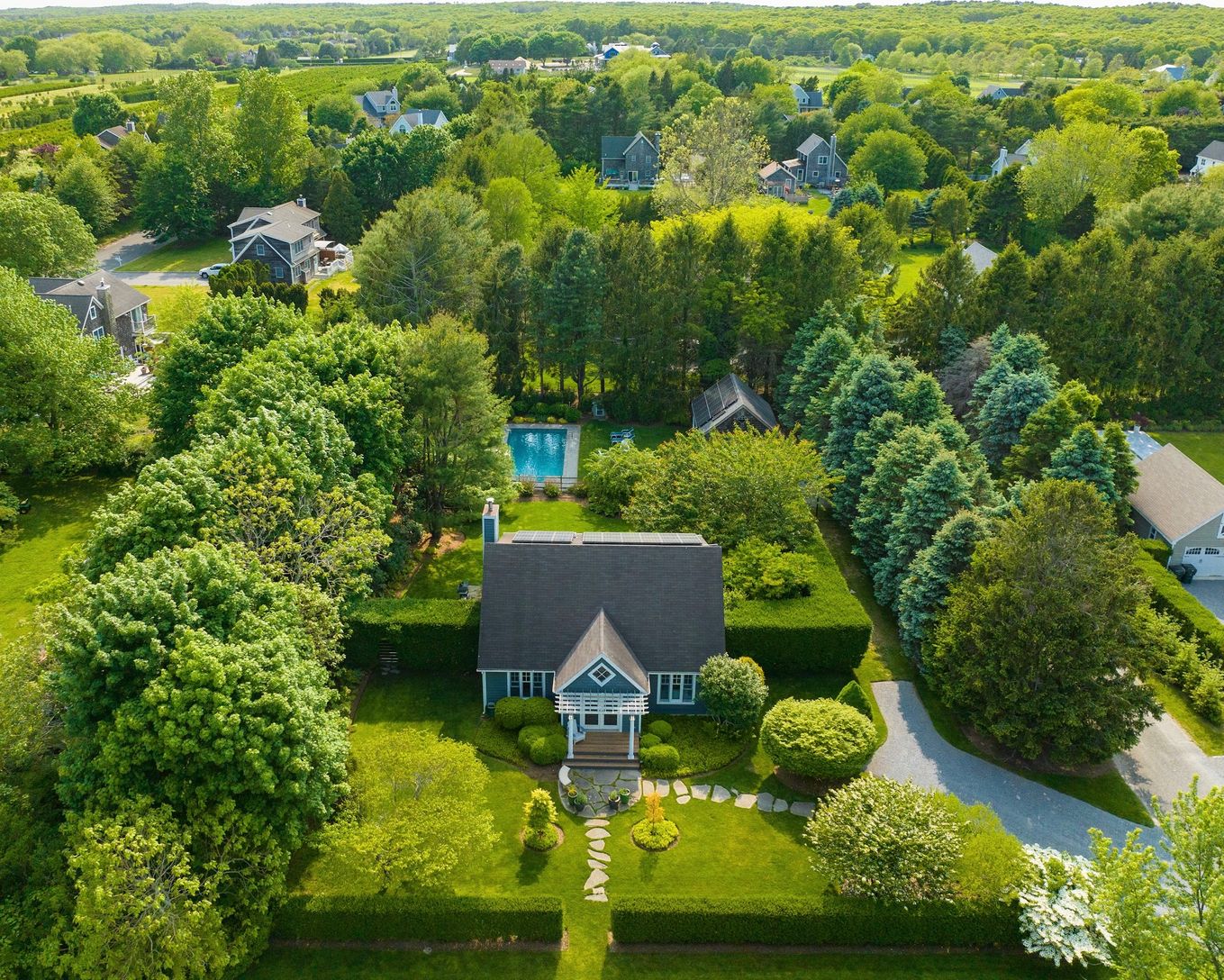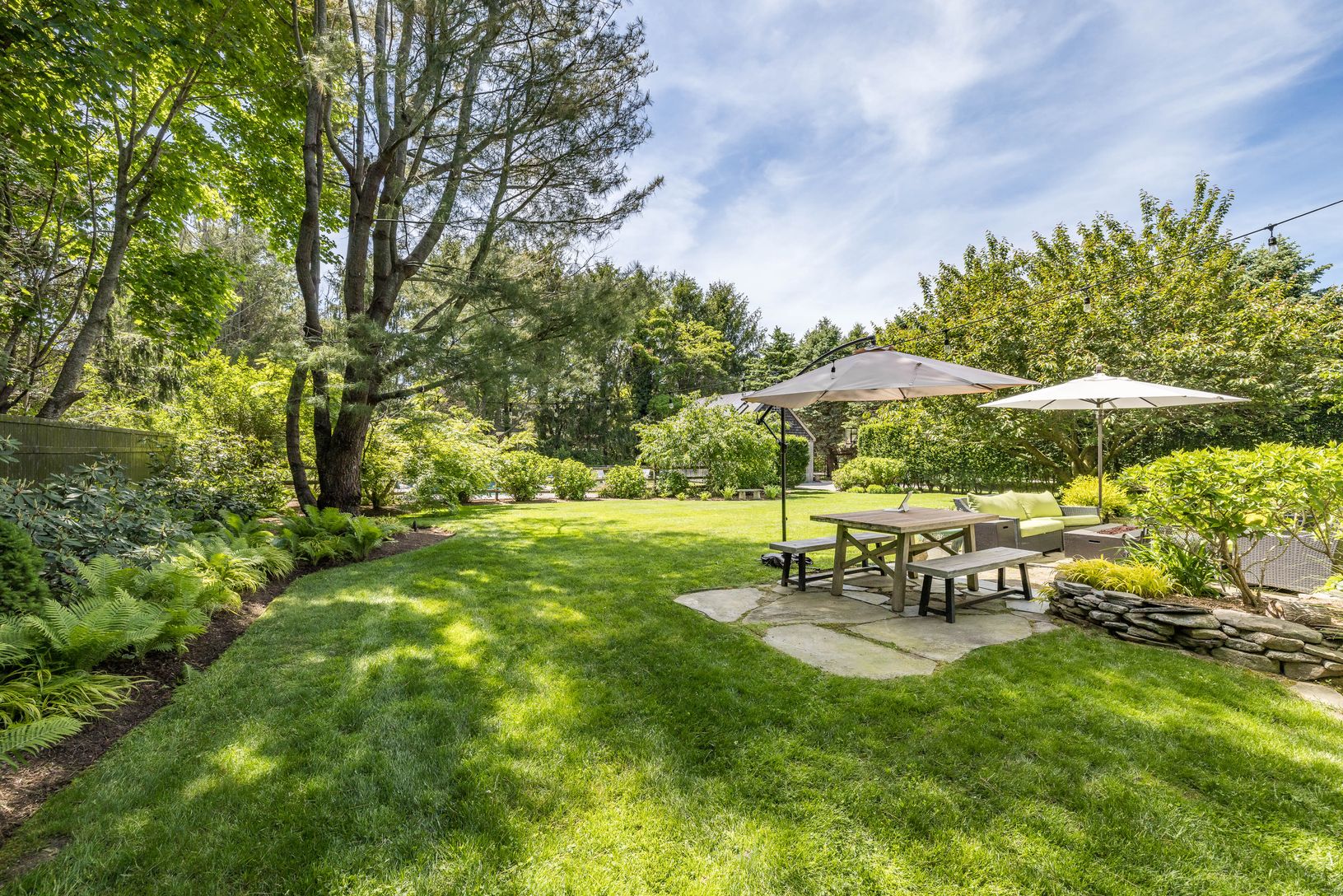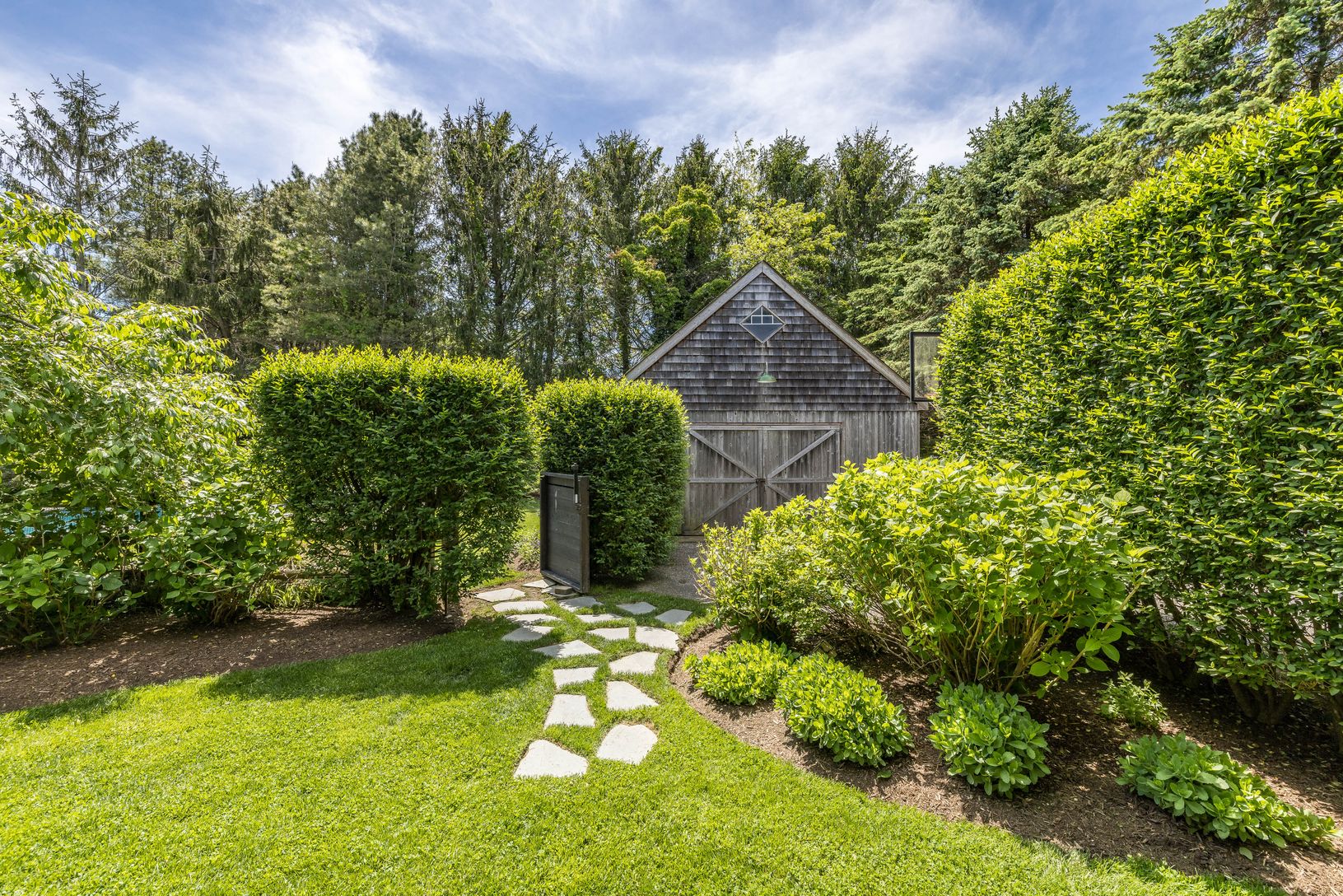 Nestled within the farm fields of Watermill's bucolic landscape on prestigious Blank Lane this enchanting three-bedroom storybook home is a testament to the relaxed lifestyle the Hamptons became known for. Poised back from the street behind a precision-trimmed privet hedge on a half-acre of mature meticulously landscaped grounds, the property exudes an air of creativity and tranquility that perfectly captures the essence of Hamptons living.