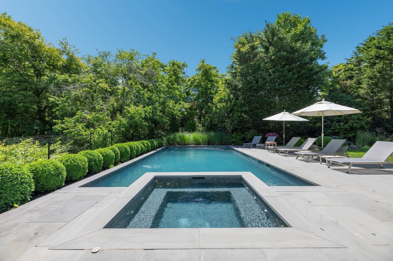 Beautifully appointed south-of-the-highway rental in Sagaponack. Features include six bedrooms - all en suite with a junior primary suite on the first floor, 7 full and 1 half bathrooms, media room, formal living and dining rooms and a gourmet kitchen. Outdoors enjoy the heated gunite pool, and dock on Sagg Pond just a short distance to the beach.