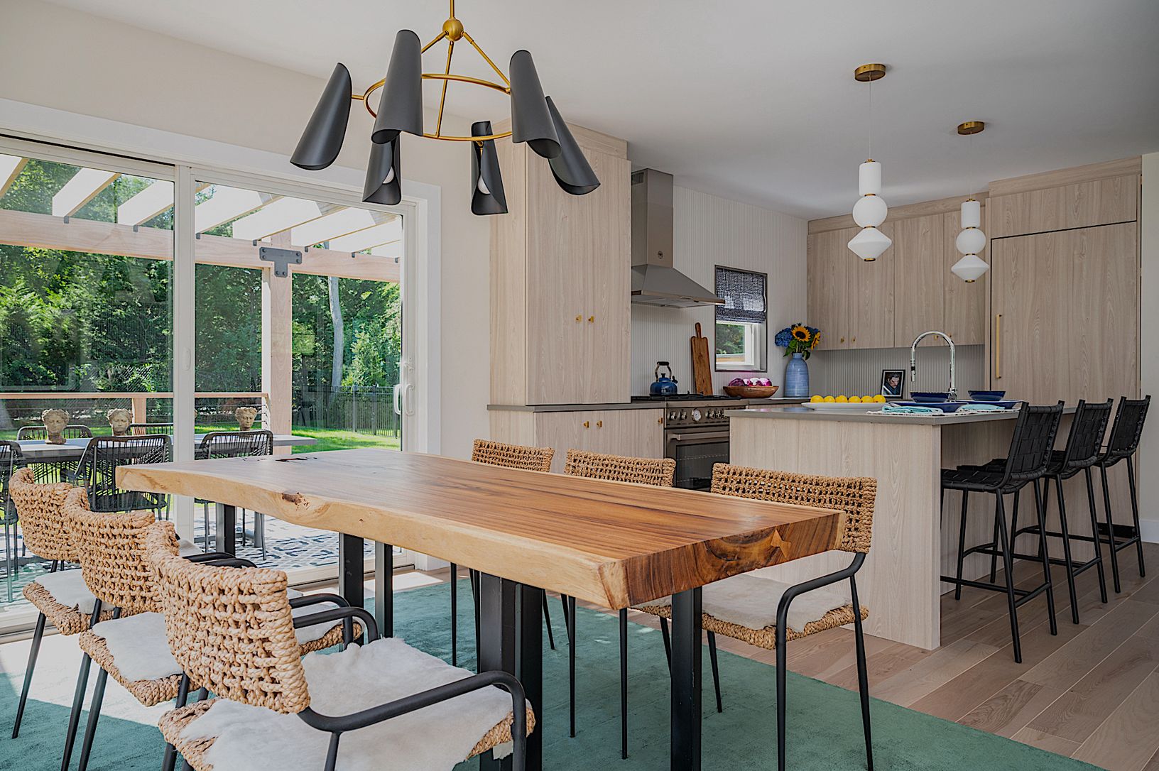 Fabulous new 4+ bedroom in Sag Harbor on a private .87 acre, designed for indoor-outdoor living. The light-filled open floor plan is perfect for entertaining, and includes a new custom kitchen with Bertazonni appliances and a breakfast bar, and walls of glass leading to the oversized wrapped-around mahogany deck with multiple lounging and dining areas plus an outdoor kitchen. The first floor media room/den with separate full bathroom provides