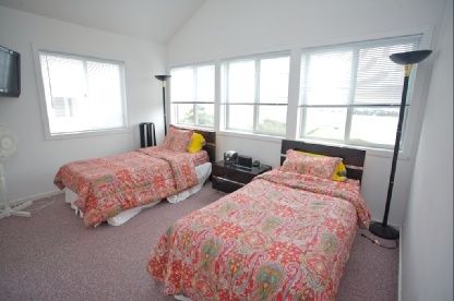 Two car garage with bathroom and shower to rinse off from a day at the beach.