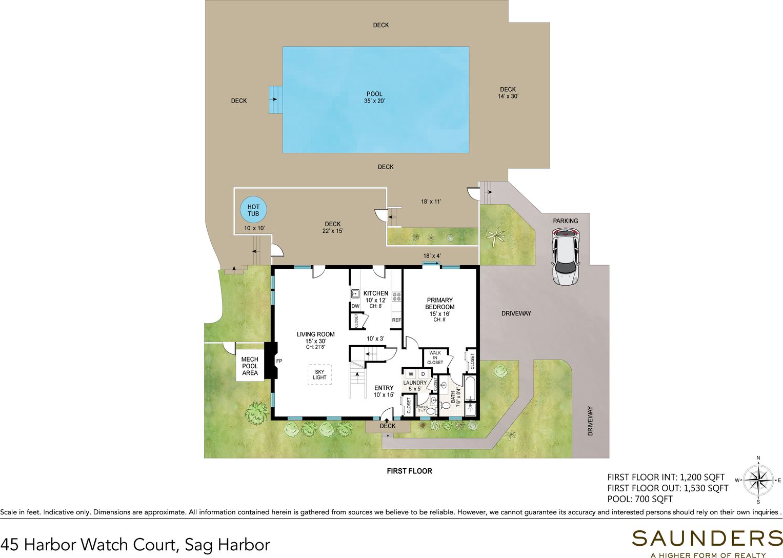 This four bedroom, 2.5 bathroom traditional is situated on a quiet street just outside of Sag Harbor Village. The home features a triple height cathedral ceiling living room / dining room area with tons of light. Also featured are a first floor primary bedroom, a heated pool with extensive decking, a hot tub, and a one car attached garage. All of this situated on a beautiful one acre parcel.
