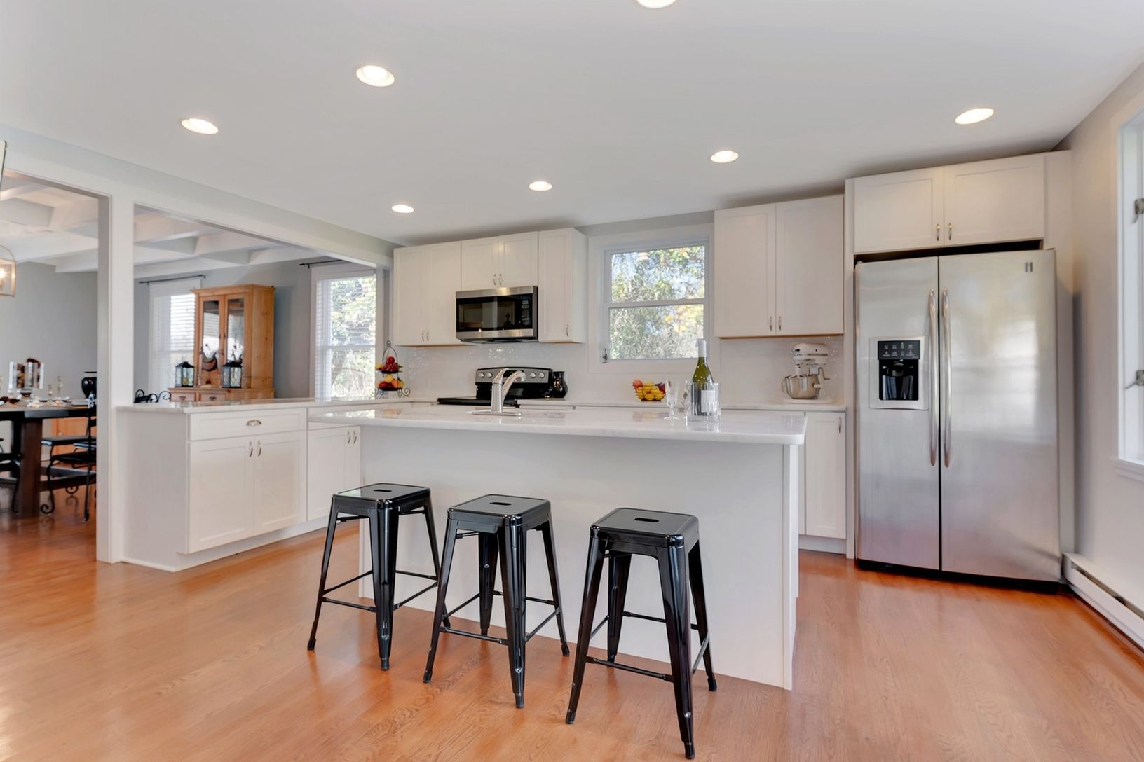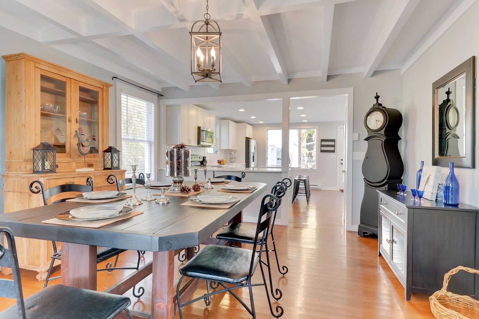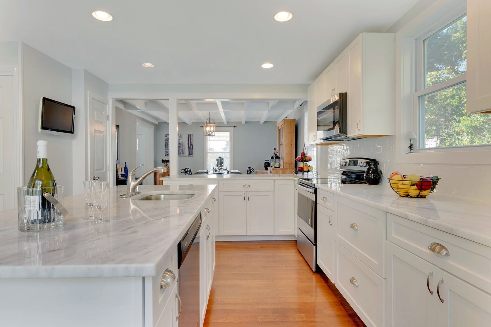 Completely renovated four bedroom, two bath Dutch Colonial located on a quiet street, just 3 houses from Moriches Bay. The front porch welcomes you into the living room with a wood-burning fireplace. Modern kitchen with stainless steel appliances and granite countertops offers a center island with seating and opens to the dining room. Hardwood floors throughout and a den on the first floor. The quarter acre property also features a detached o