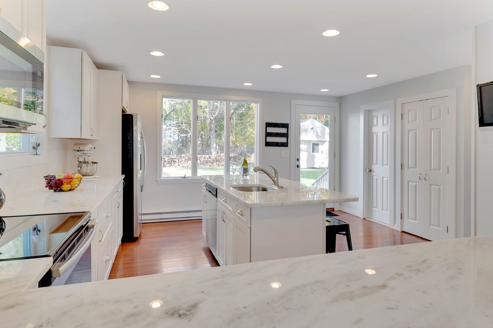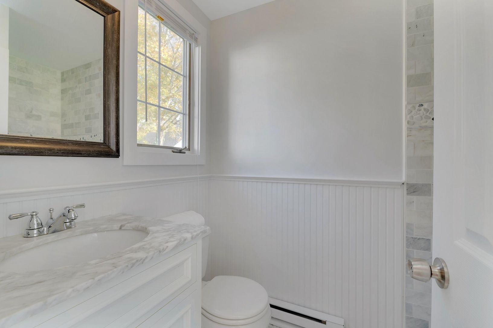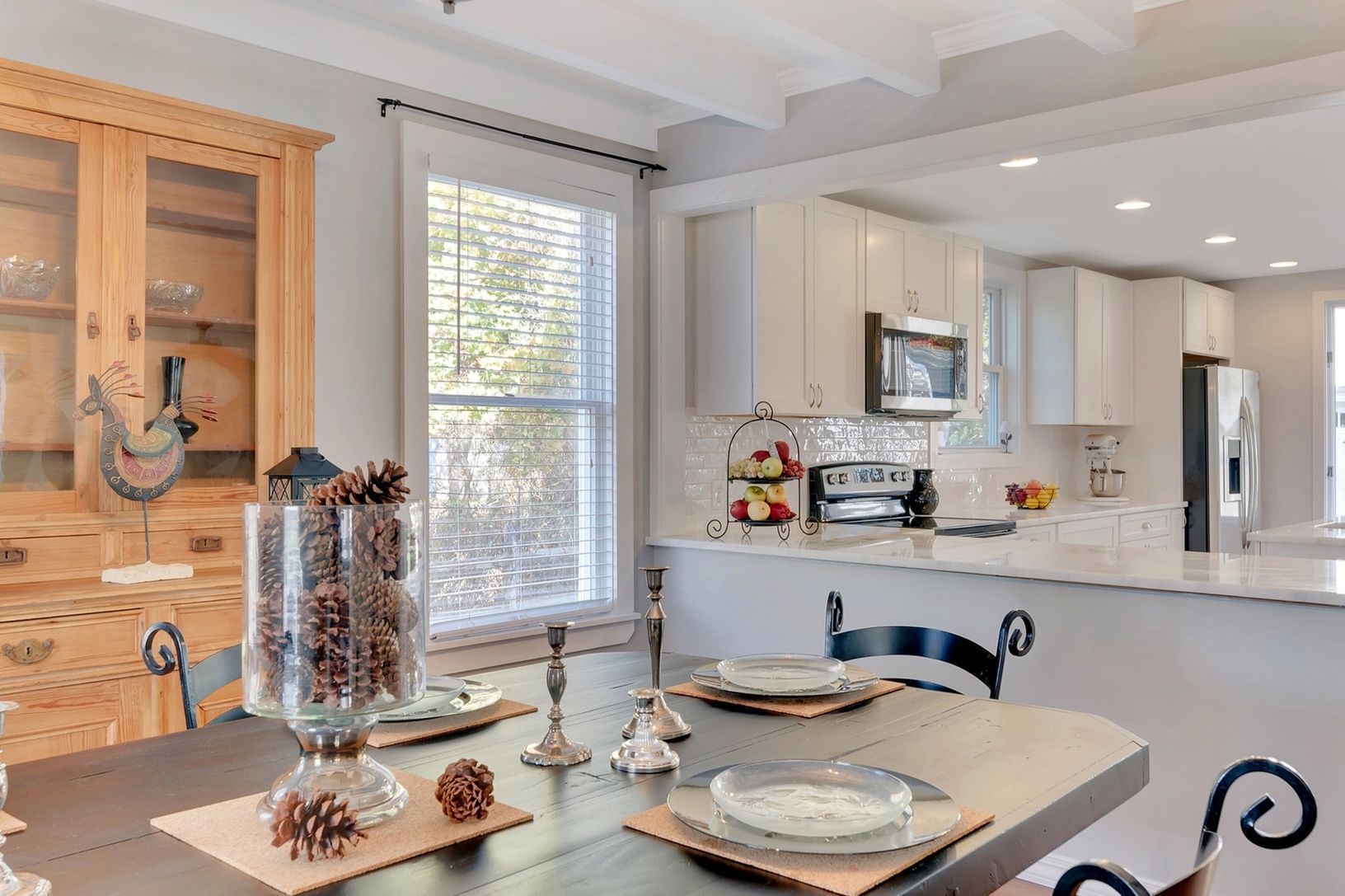 Completely renovated four bedroom, two bath Dutch Colonial located on a quiet street, just 3 houses from Moriches Bay. The front porch welcomes you into the living room with a wood-burning fireplace. Modern kitchen with stainless steel appliances and granite countertops offers a center island with seating and opens to the dining room. Hardwood floors throughout and a den on the first floor. The quarter acre property also features a detached o