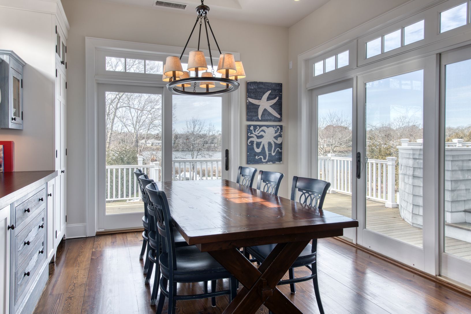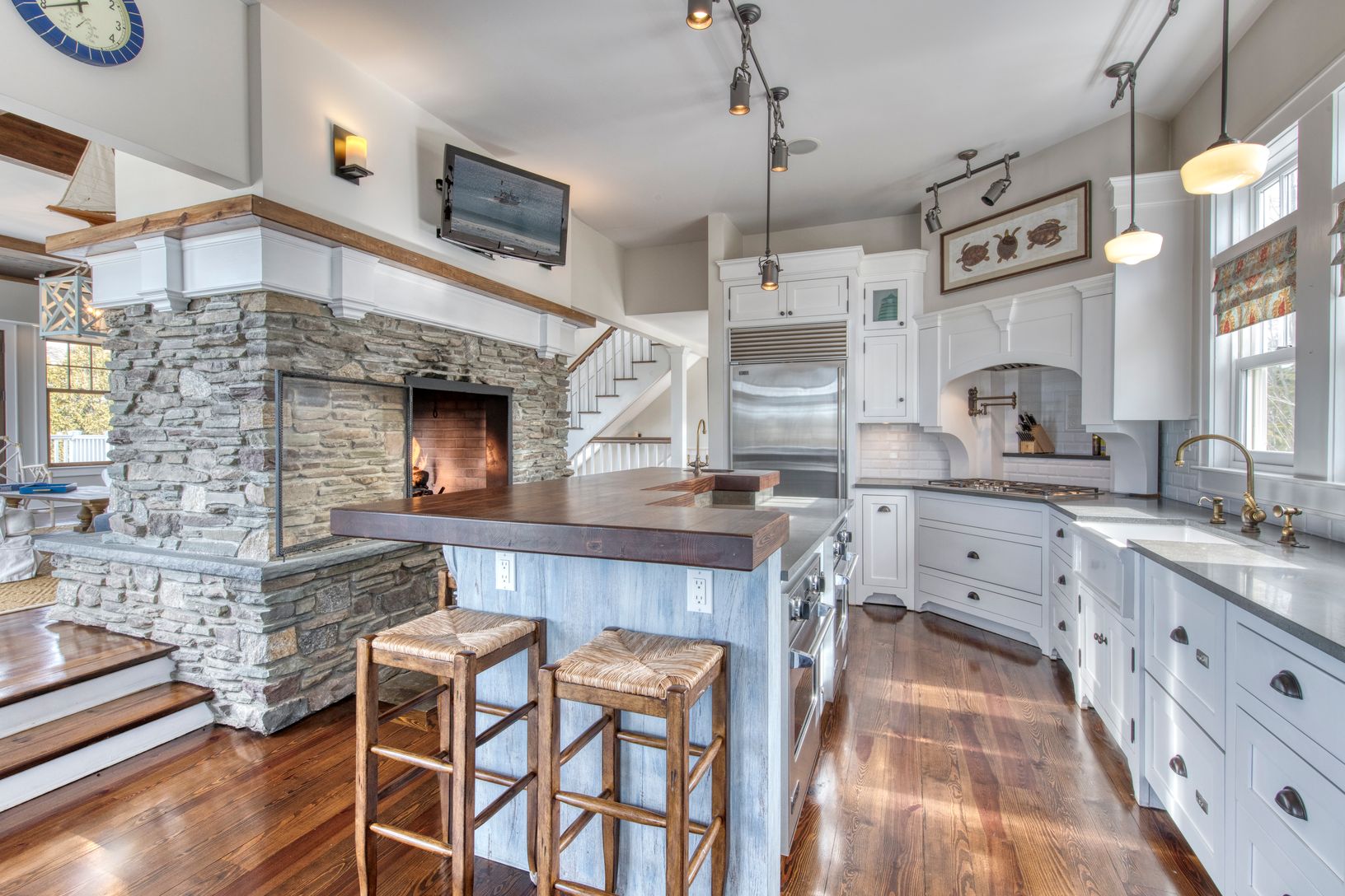 Set down a long private driveway, this custom-built Nantucket style home with stunning western views over Quantuck Creek, has it all including a private boat dock, gunite pool, and all-weather tennis court. The open floor plan is perfect for entertaining and offers striking water views from the living room, kitchen, and dining area. The chef's kitchen includes a large island, custom built-in buffet, dining area and top of the line Viking, Fish