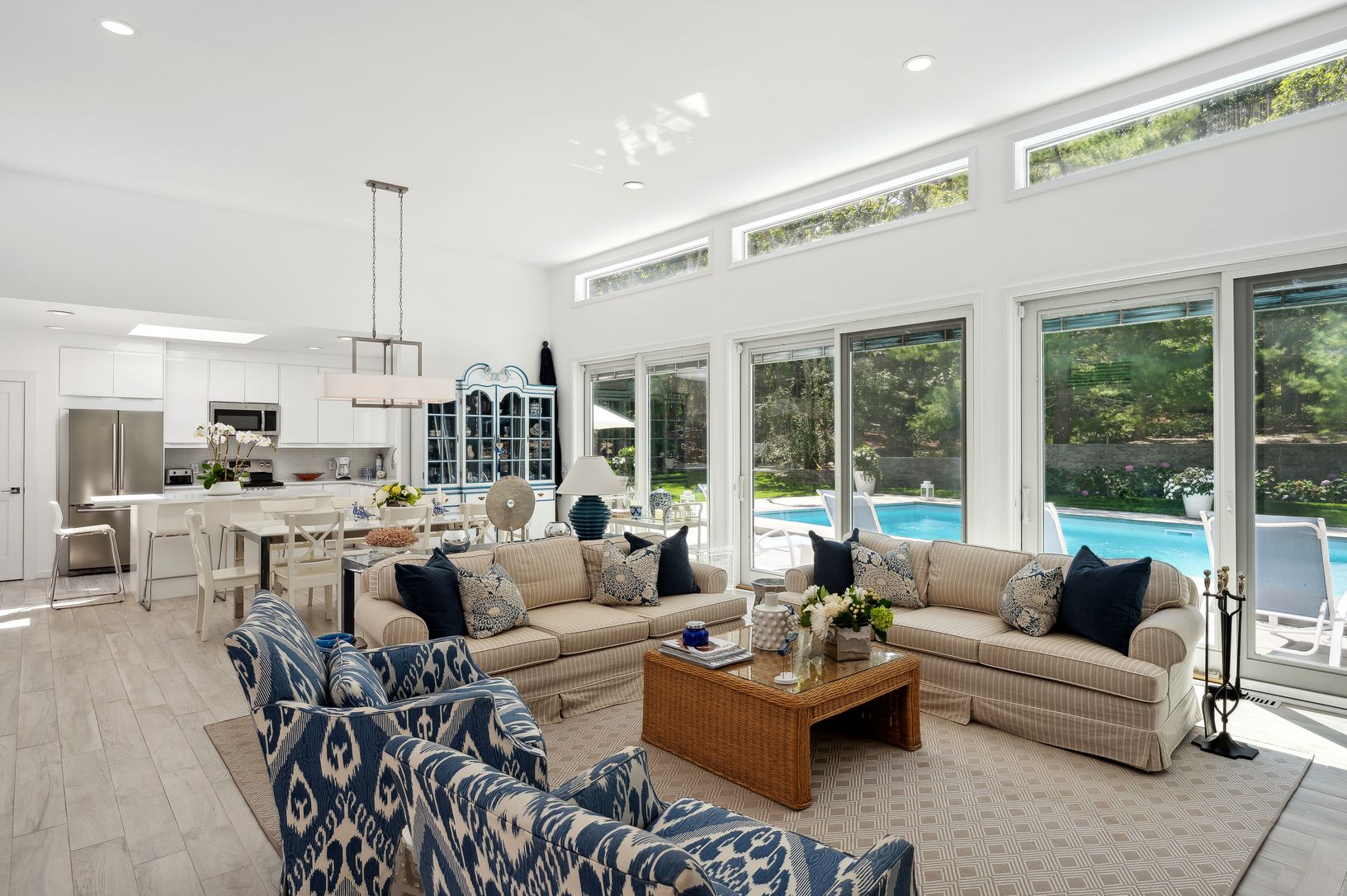 NEW TO THE 2025 MARKET....Enjoy Southampton August 2025. This 4 bedroom, 3 bathroom contemporary is ready for summer with a wonderful completely renovated kitchen with quartz counter tops, a great open floor plan, cathedral ceilings and loads of natural light throughout. Floor to ceiling sliders opening to a large deck with a brand new pool, fire pit and patio make this house wonderful for entertaining. The house has four bedrooms and three up