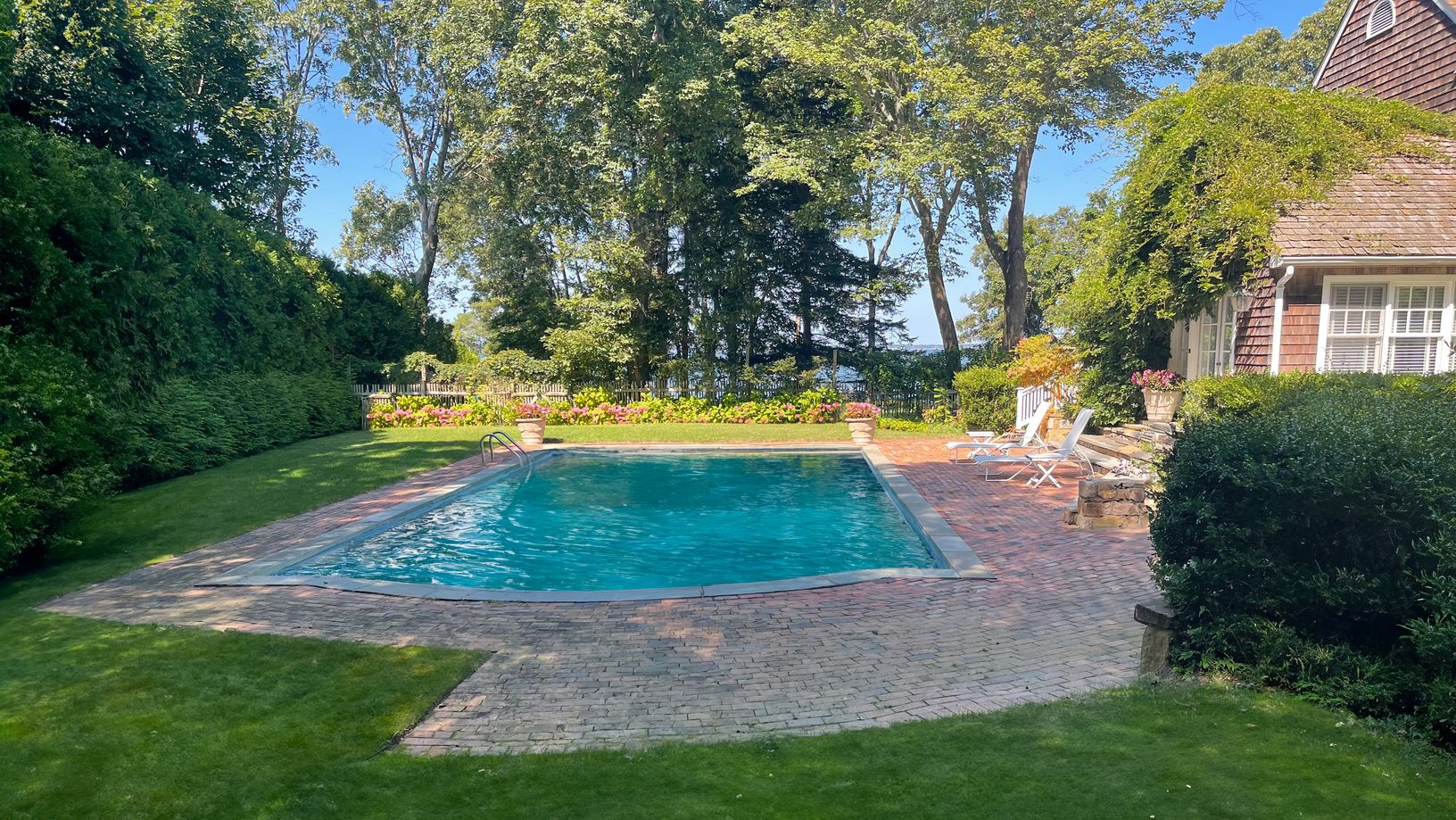 Discover this Hampton classic 4-bedroom, 3.5-bathroom shingle-style "cottage" nestled on 1 acre with stunning bluff-top views of Peconic Bay beyond a permanent greenbelt. Offering 3,800 square feet of living space with room for expansion, this gracious home combines classic coastal charm with modern amenities. Enjoy a seamless indoor-outdoor lifestyle with a gunite, heated in-ground pool, expansive rolling lawn, and breathtaking bay views of s