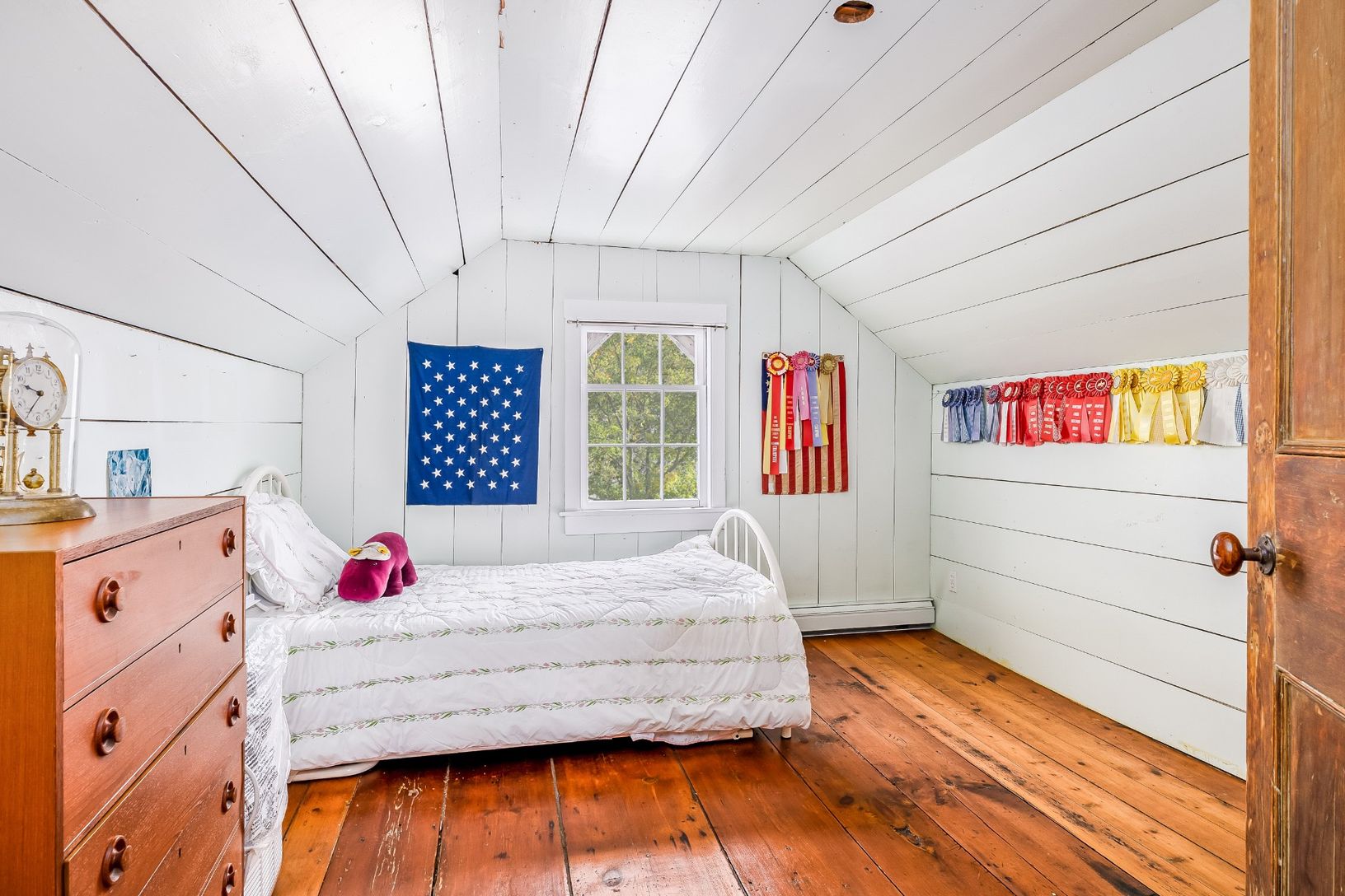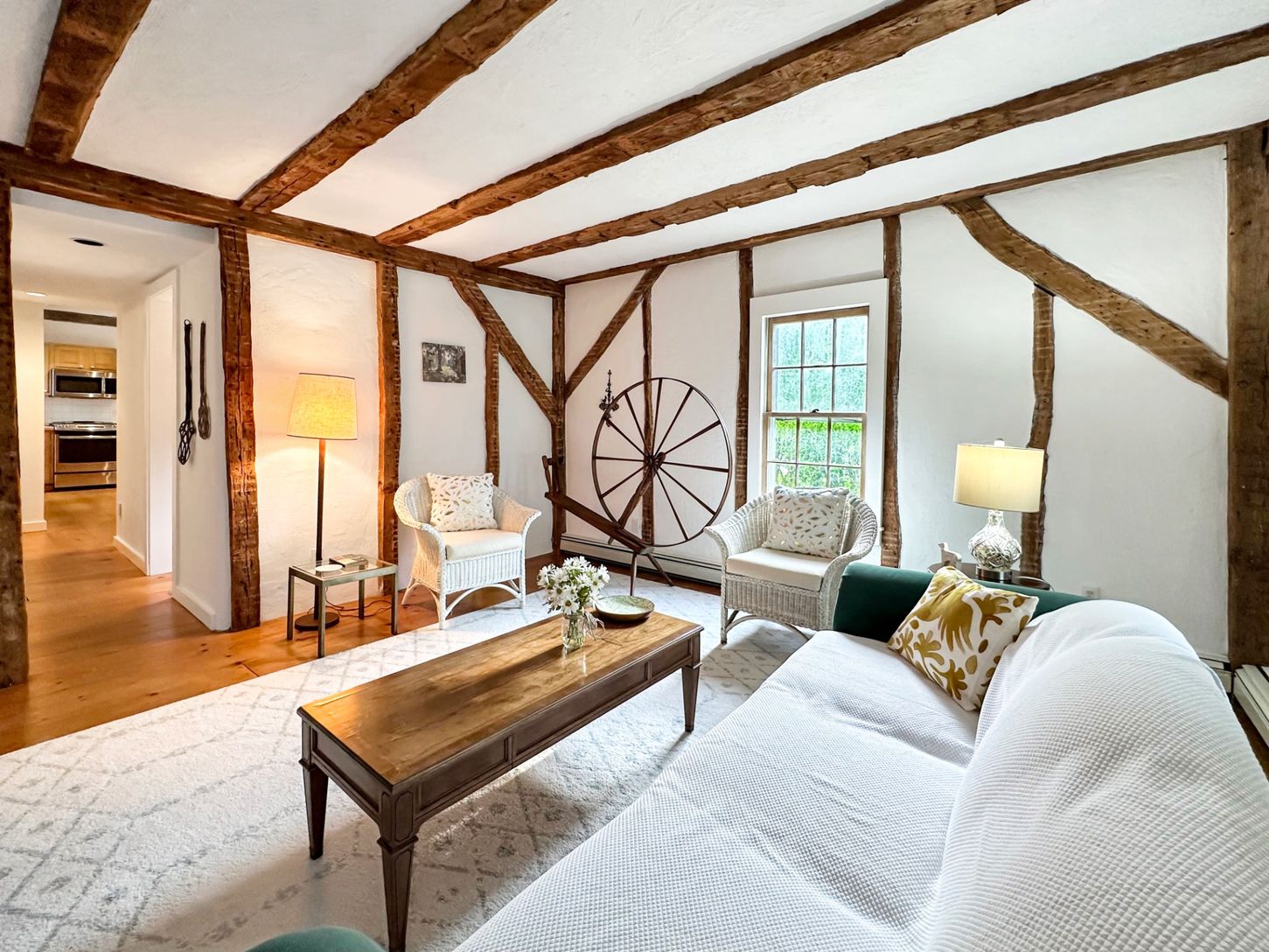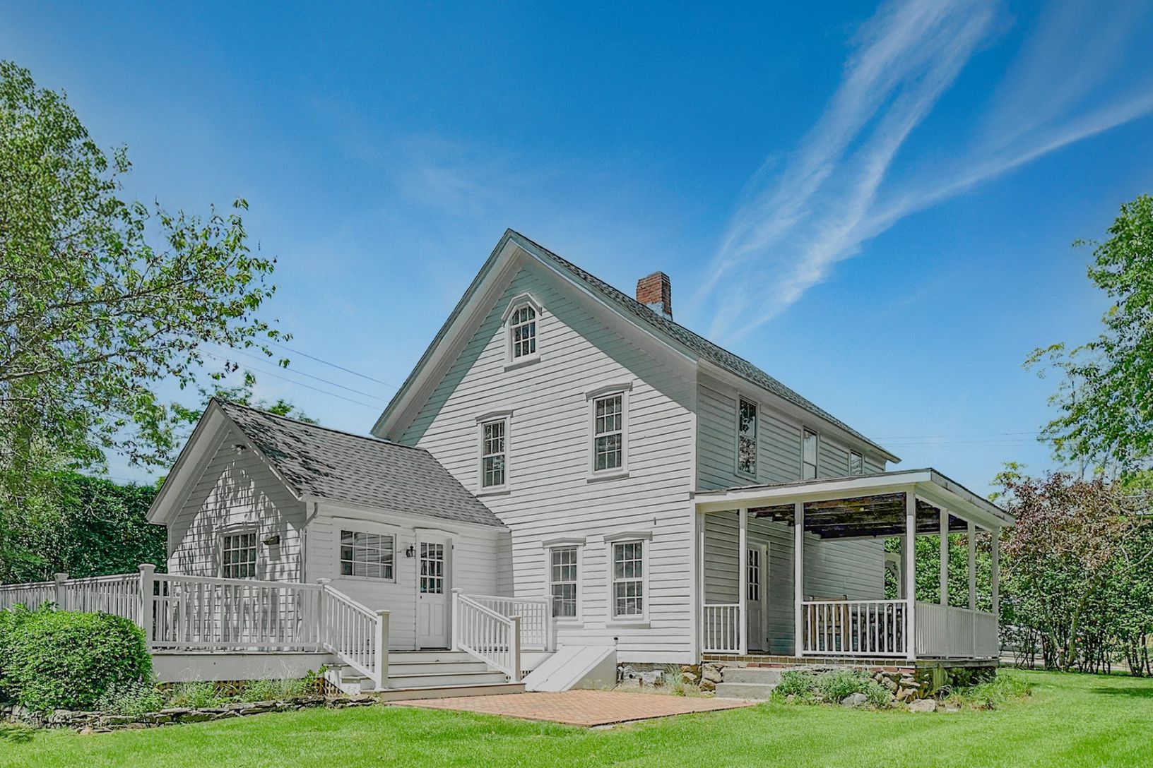 Located just outside Shelter Island Heights, this charming three-story stick-and-shingle style, clapboard farmhouse built circa 1870 has a rich history. "Known as the Brinley-Wiggins house, [in 1927], it was the home of Margaret Walters, one of Squire Chase's daughters. It was...moved [from the Heights]", wrote historian Ralph Duvall in his 1927 literary essay "Shelter Island in 1870". With tall, distinctive privet hedges along two sides and o