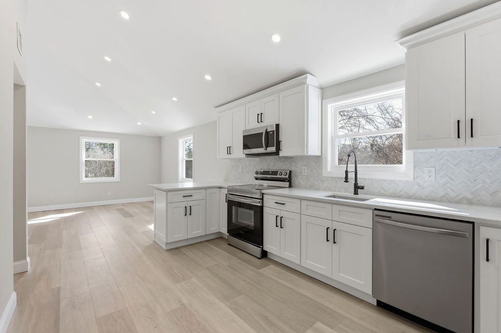 Start your year off right with this brand new renovated home in East Quogue. 3 Bedrooms 1.5 bathrooms formal entrance with an oversized living room with a brick fireplace. EIK with all new kitchen and marble countertops .Primary bedroom with a private bath large loft like bedroom on the 2nd floor, 2 car oversized garage with a circular driveway. Large yard steps to main st and the East Quogue Park.