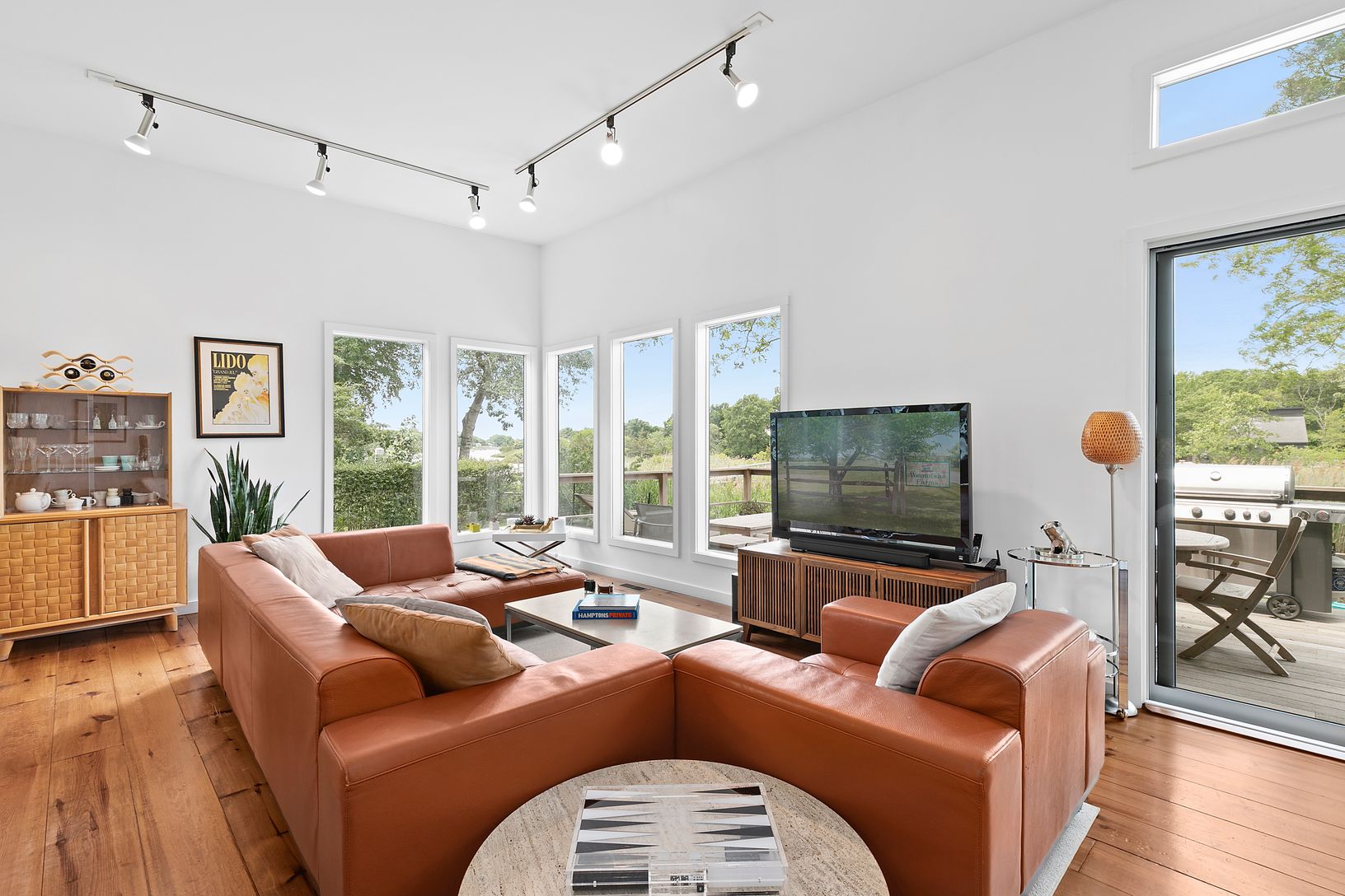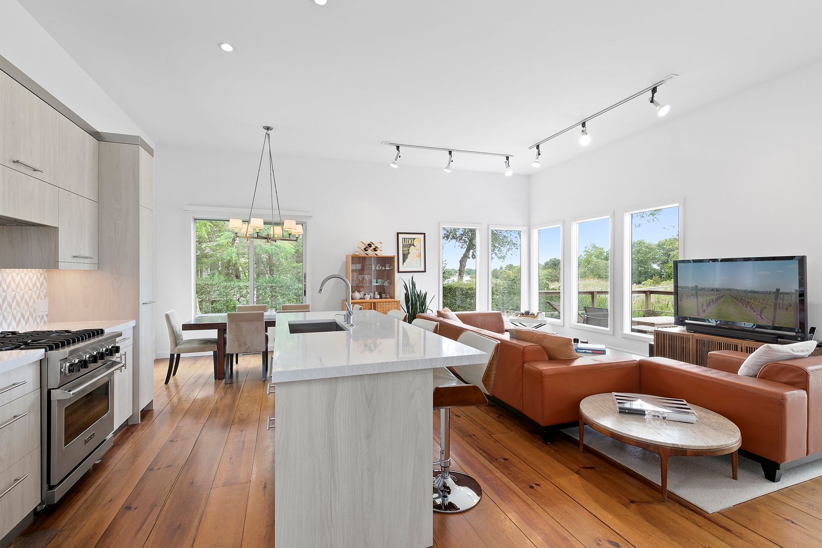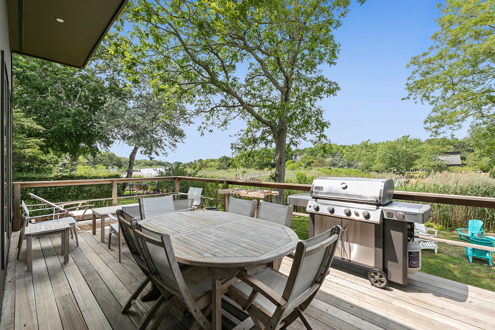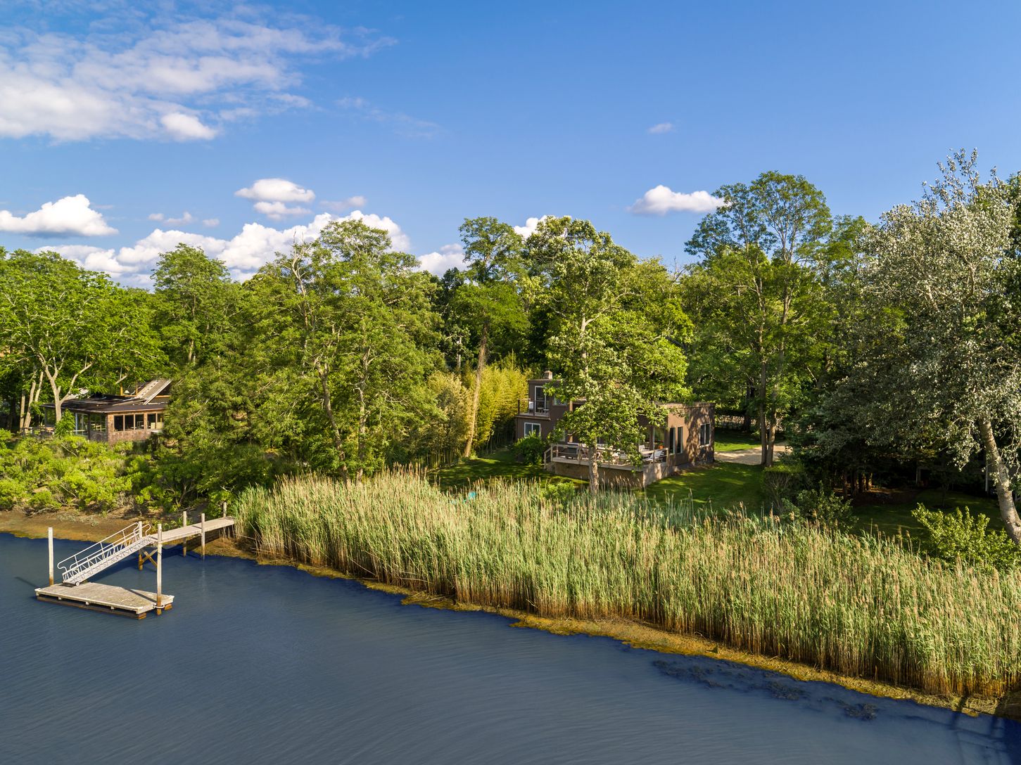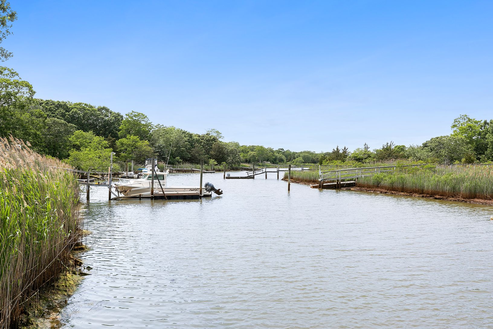This contemporary home is situated creek-front in Noyac just minutes to Sag Harbor village with docking rights. The house features three bedrooms and two baths, with a private primary suite on the second level and balcony over-looking the water. The main floor has expansive views of the back yard from the renovated kitchen area or spacious living room. The back deck is perfect for Summer BBQ's while enjoying the picture perfect sunset over the