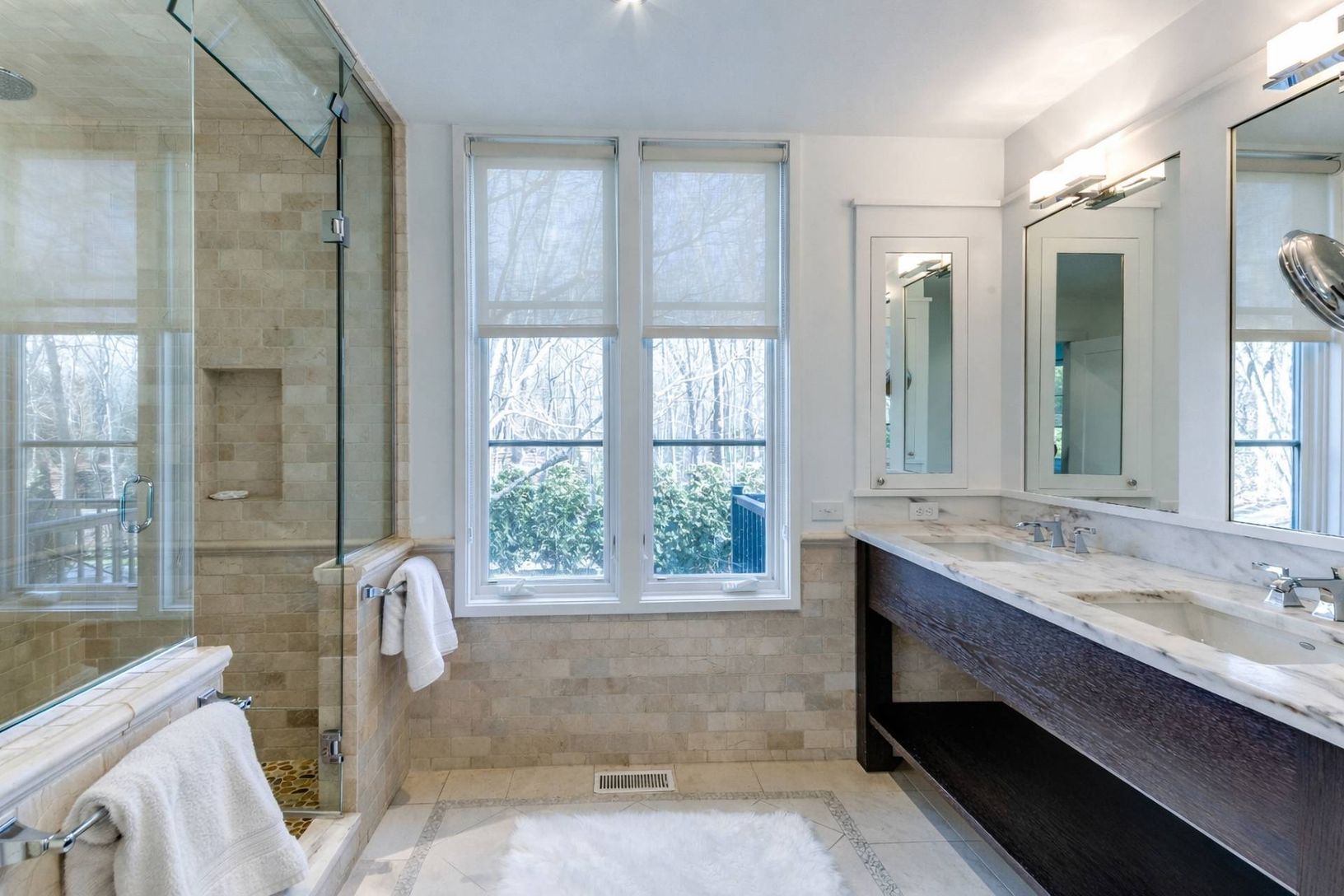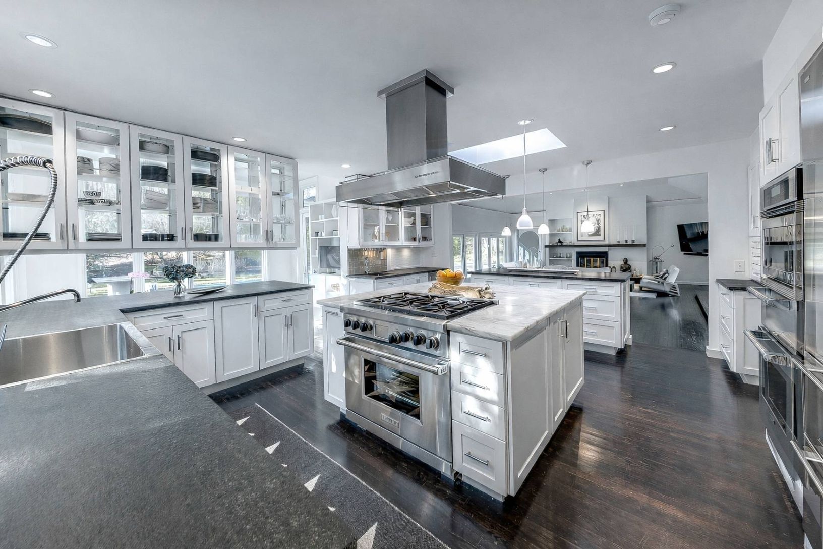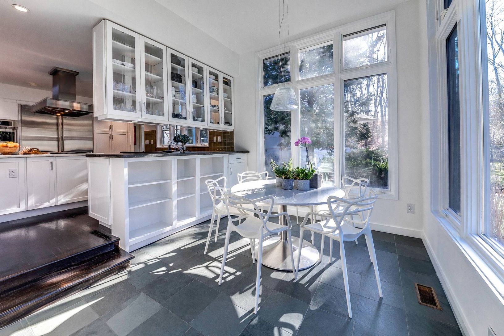 Centrally located between Bridgehampton and Sag Harbor village, this light-filled modern home is the ideal summer getaway. The massive great room and dining area with French doors leading to the outdoor terrace and the large gourmet kitchen with sunny breakfast room are ideal for entertaining. Delight any serious chef with its marble-topped island, dual fuel Wolf range, 3 part stack Thermador wall ovens, side-by-side twin Sub Zero's and, dual