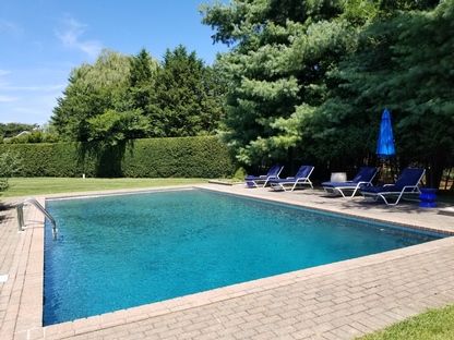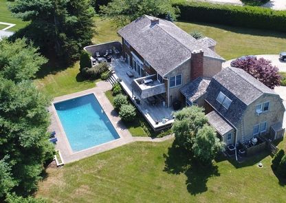 New to the rental market. Bridgehampton, shingle-style house on coveted Lumber Lane, recently updated with four bedrooms, two full and one half- baths. Plush landscaping on nearly one acre +/-, with gunite pool and ample decking. Huge master suite with fireplace, marble bath, and sun porch. Double height open living room flooded with sunlight from three sides and double-sided fireplace leading to an attached sitting room with grand piano. Priv