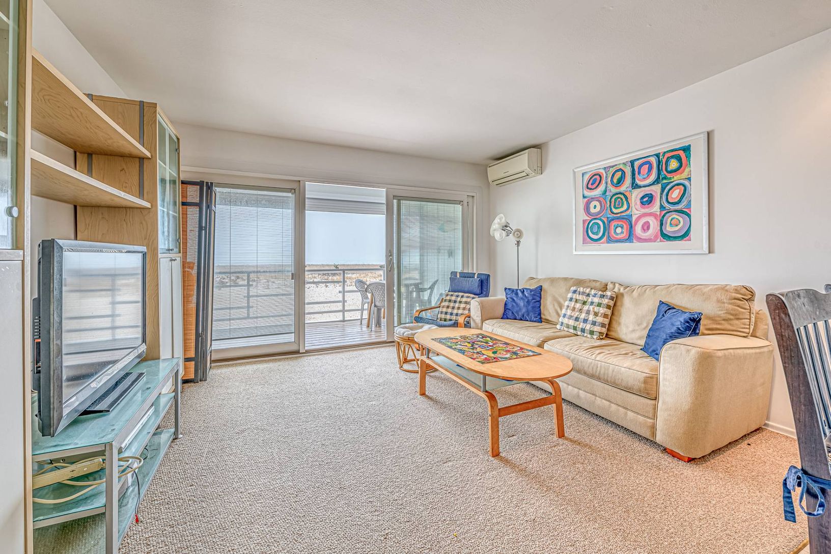 Spend Memorial Day through Labor Day at your own oceanfront residence. The Sandcastle offers a large heated pool overlooking the bay, a tennis court, and a bayside platform to enjoy the beautiful sunsets. The 1 bedroom unit has been freshly painted and well maintained. The large slider door opens from the living room to the oceanfront private deck. Come enjoy your summer at The Sandcastle!