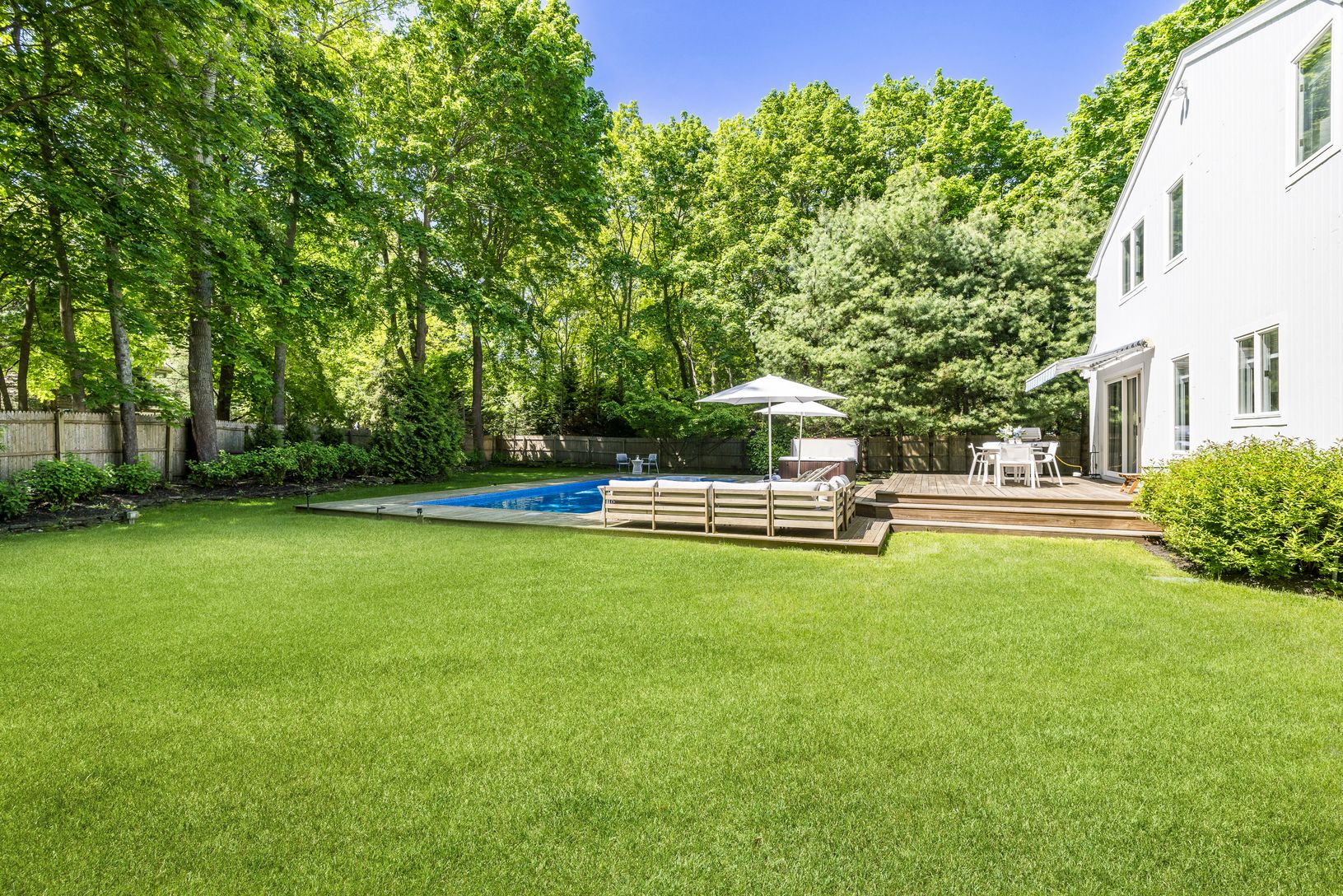 This bright and airy renovated 4-bedroom home is a real gem just a mile away from the heart of Sag Harbor Village. Its perfect for entertaining and offers an array of features ideal for a summer retreat or a wonderful year-round weekender residence. Enjoy the privacy of the front and back yards, a heated pool, outdoor shower, and a jacuzzi spa tub. Inside, the vaulted living room with a wood-burning fireplace and open-plan layout is awash in n