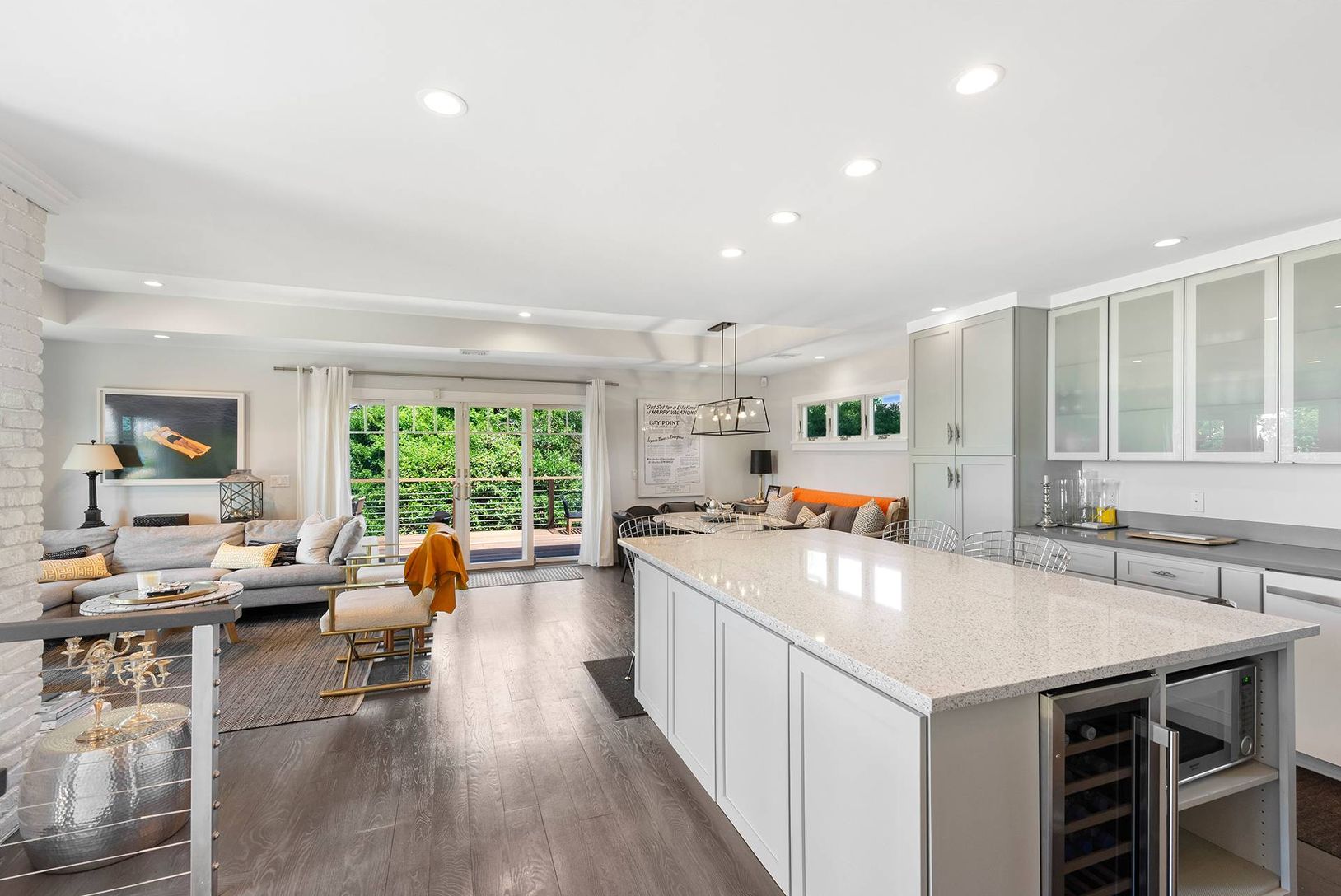 Enjoy this light-filled and chic home with views of Noyac Bay from nearly every room. Renovated from top to toe with fabulous gourmet kitchen that opens to the dining area, living room with fireplace, and deck. The main level hall leads to the primary suite with luxury bathroom and private deck. Also a guest bedroom and guest bathroom are both located on the main level. The lower level suite has a living room, kitchenette, 2 additional bedroom
