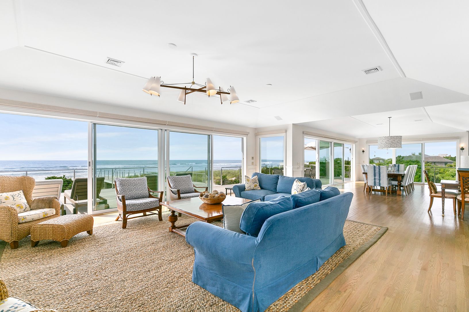 Magnificent oceanfront estate set on 2 beautiful acres in Quogue. This stunning, traditional 2-story home boasts 160 feet of ocean frontage and is well-equipped with a 2-car garage, heated gunite pool, all-weather tennis court, outdoor shower, and cabana kitchen for outside entertainment. With over 7,000 square feet, this luxurious home features 6 bedrooms, 6.5 baths, granite kitchen countertops, living room, den, and office, complete with woo