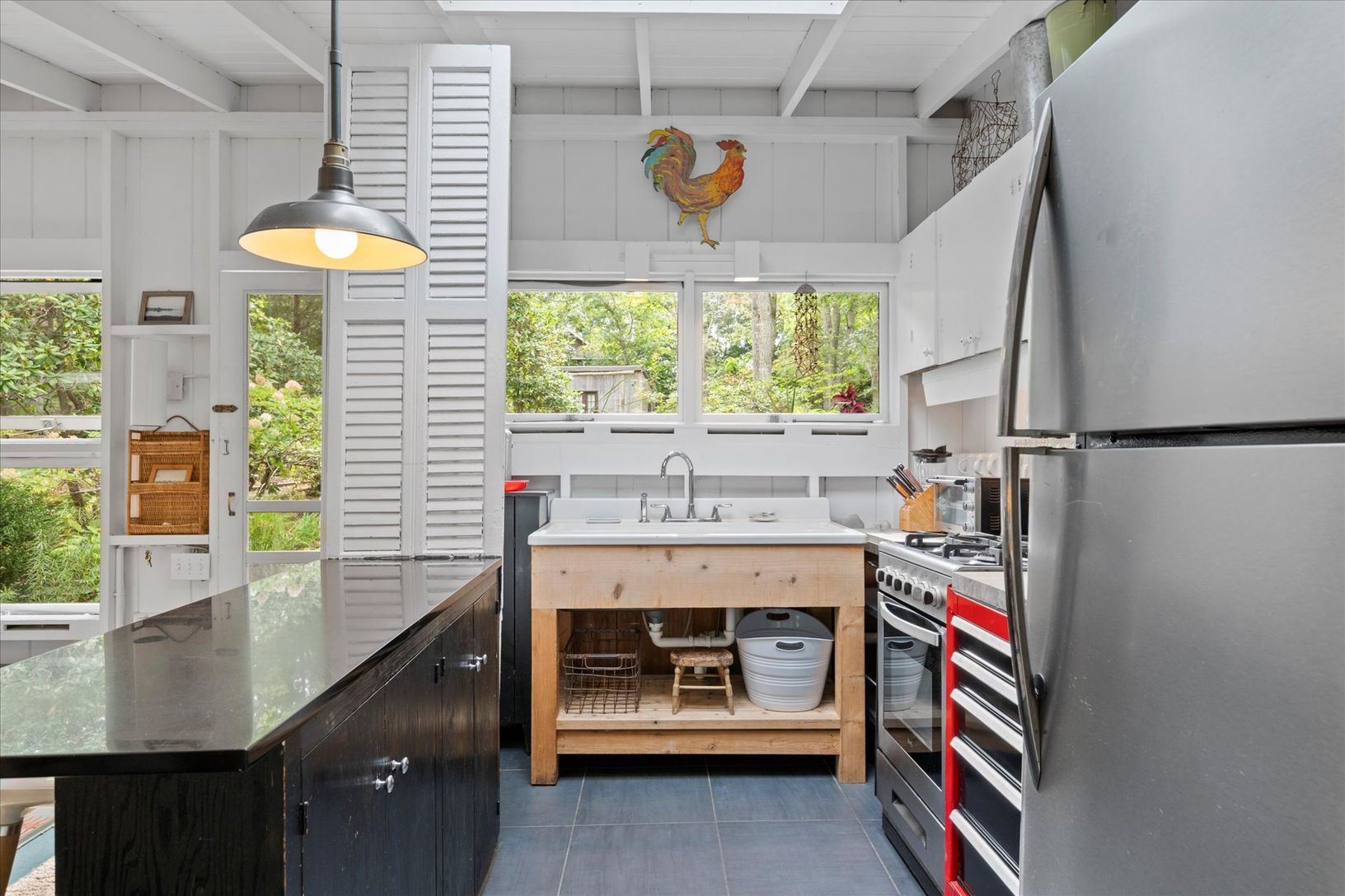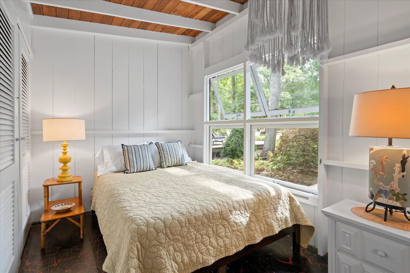 Nestled on one of the most desirable streets in East Hampton's Springs, this rare summer retreat sits on just over a half-acre and offers a rustic, bohemian charm only steps from the bay. Originally built in the 1940s as a fisherman's bungalow, the home captures the spirit of a bygone Springs-when artists, drawn by the magical light and natural beauty, made this community their sanctuary. Expanded in the 1970s and thoughtfully improved by the