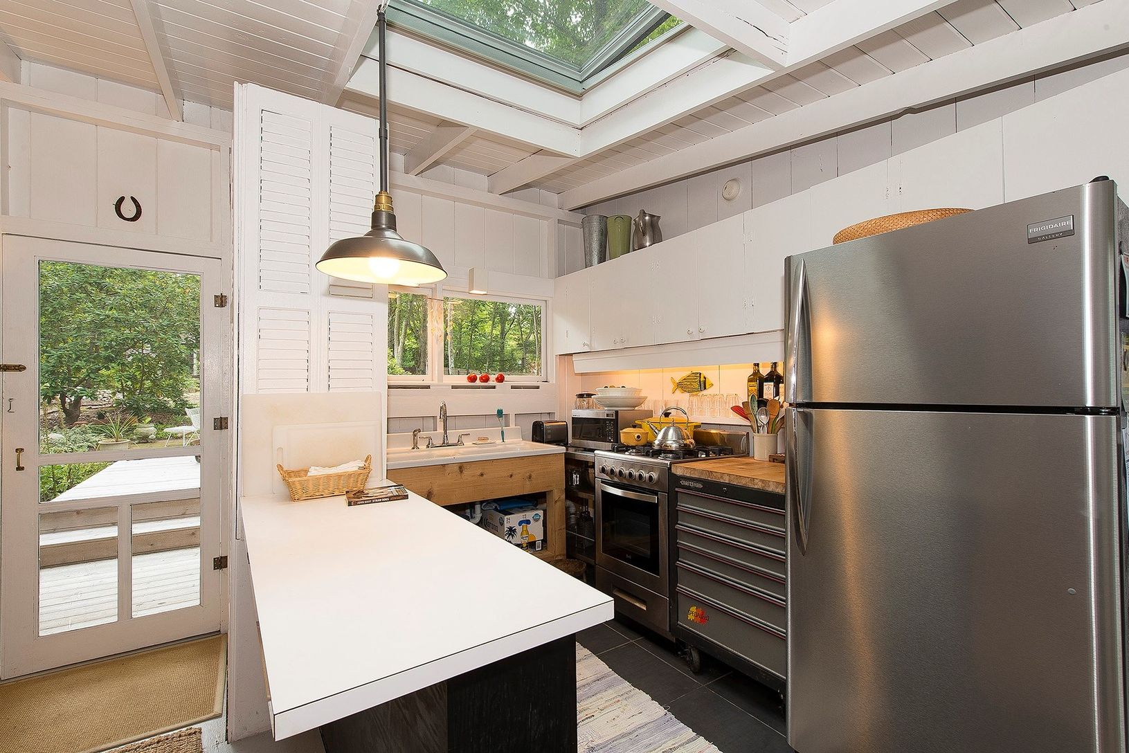 Rental Registration #: 18-2004 Meandering Bohemian vibe, private and secluded, five-minute walk to Maidstone Beach and Michael's at Maidstone restaurant. Built in the 1940's as a fishing bungalow with a 1970 addition and recently renovated, the main house is 1400 square feet on 1/2 acre. Sleeps 6. Two bedrooms in main cottage plus a separate guest cabin with double bed. Kitchen/gathering room has sofa and casual dining. Freshly painted and ta
