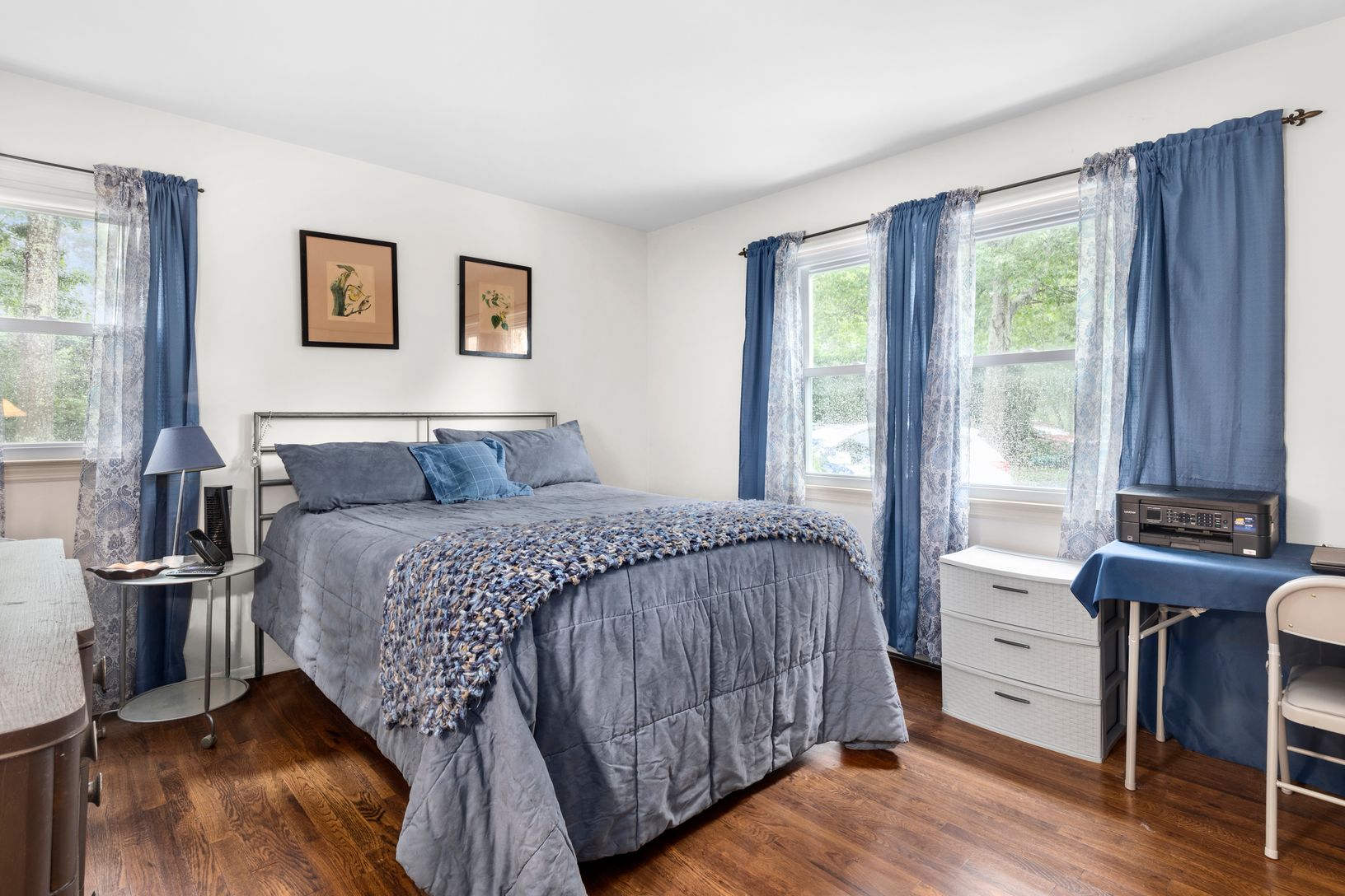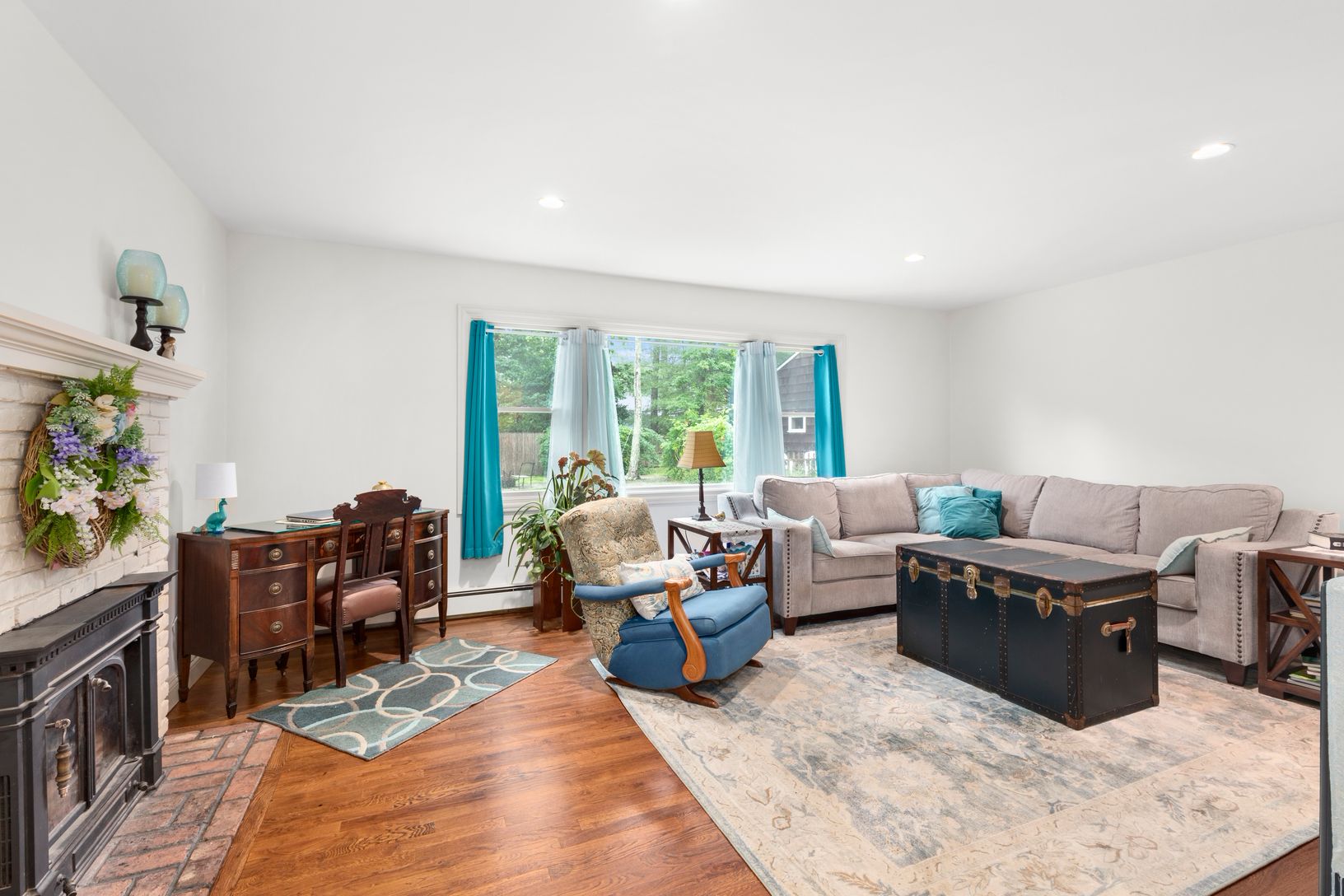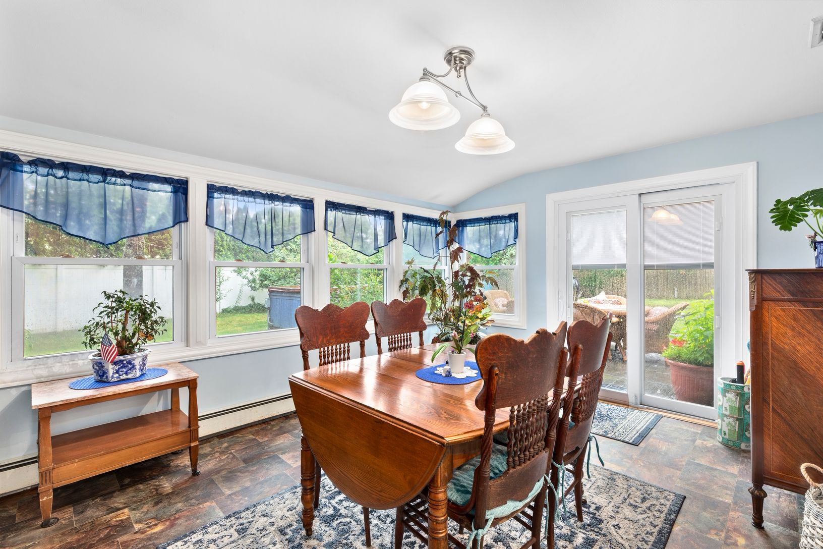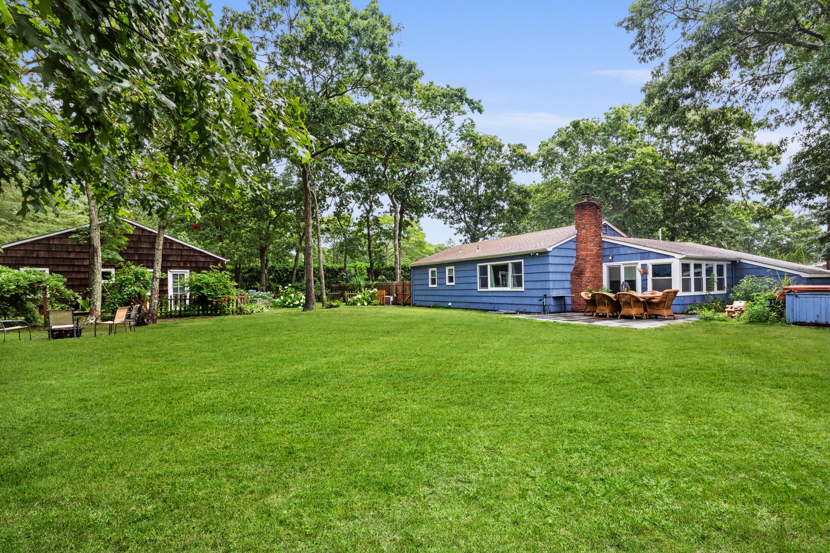Sited on a half-acre in the highly sought after Tiana Shores section. This charming three bedroom two full bath residence offers 1,200+/- sq. sf. of tastefully finished living space. Upon entering one is welcomed into the eat-in kitchen with large granite center island and granite countertops with customer cabinetry, an adjacent living room featuring a wood-burning fireplace. That flows into the light filled formal dining/sunroom that opens ou